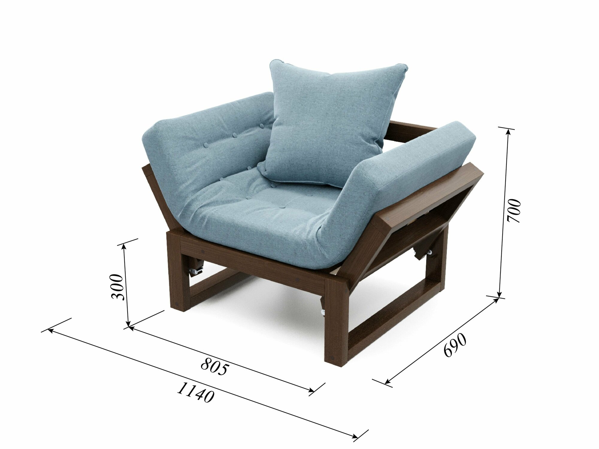 Кресло амбер, синяя-орех, рогожка, деревянное, мягкое, для дачи, для кафе и бара, на веранду, в террасу, для бани