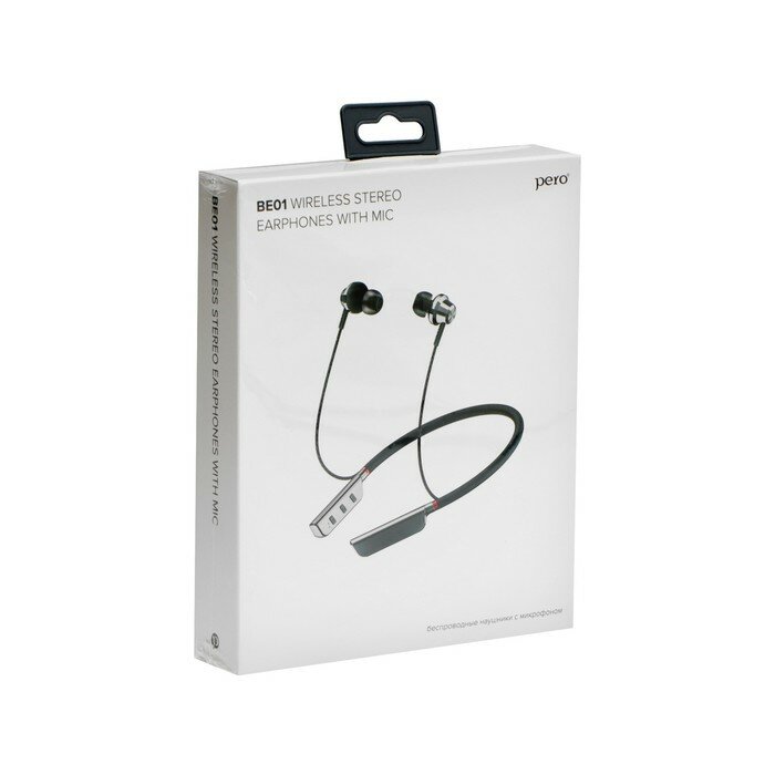 PERO Наушники PERO BE01, беспроводные, BT 5.0, микрофон, 250 мАч, до 30 часов, серебристые