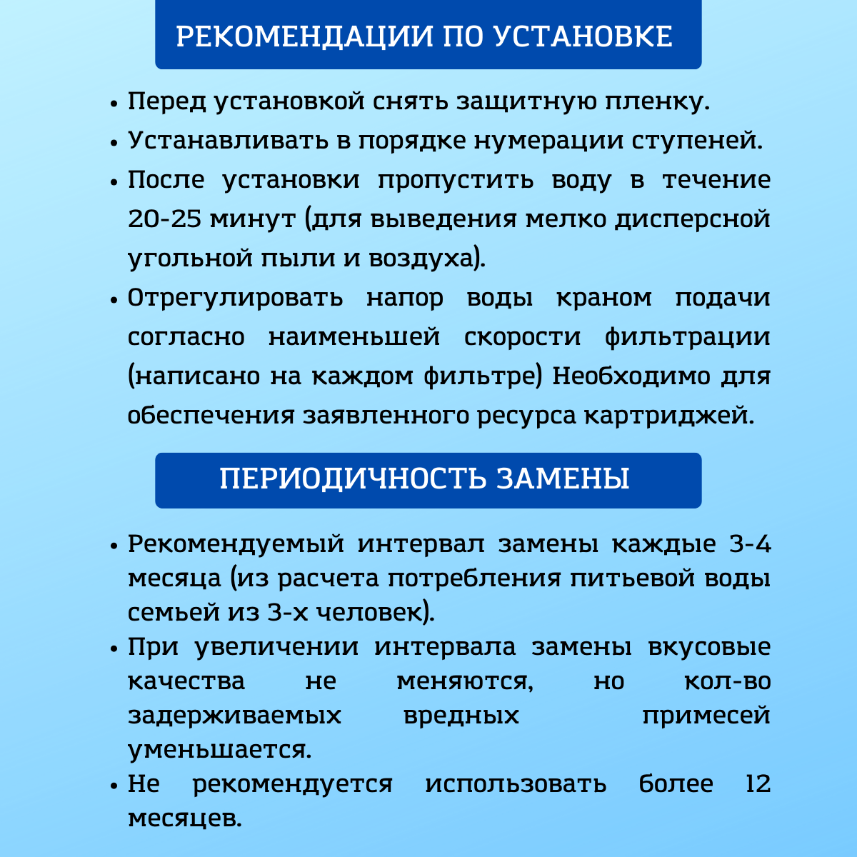 | Дополнительная информация | Только для водопроводной воды, ресурс зависит от степени загрязненности воды. |