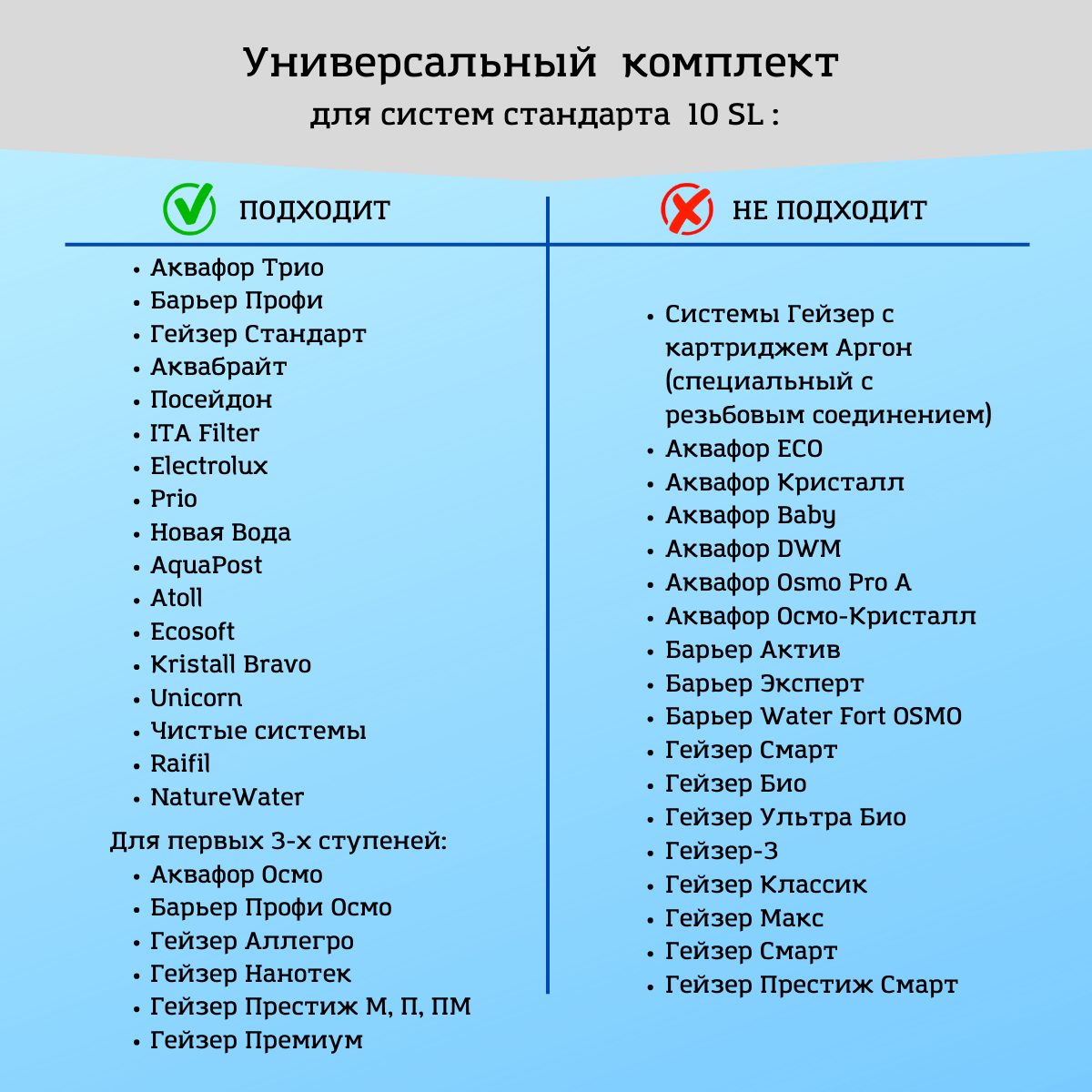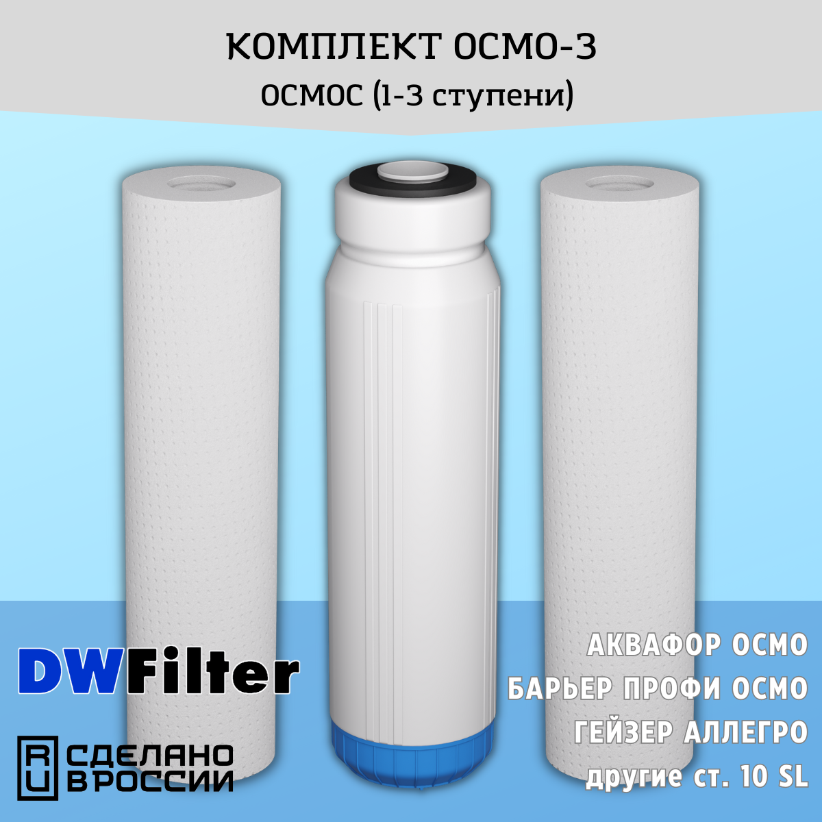 Универсальные сменные картриджи для фильтра воды DWFilter (для систем осмос) подходят для систем Барьер / Аквафор / Гейзер и др. 10SL
