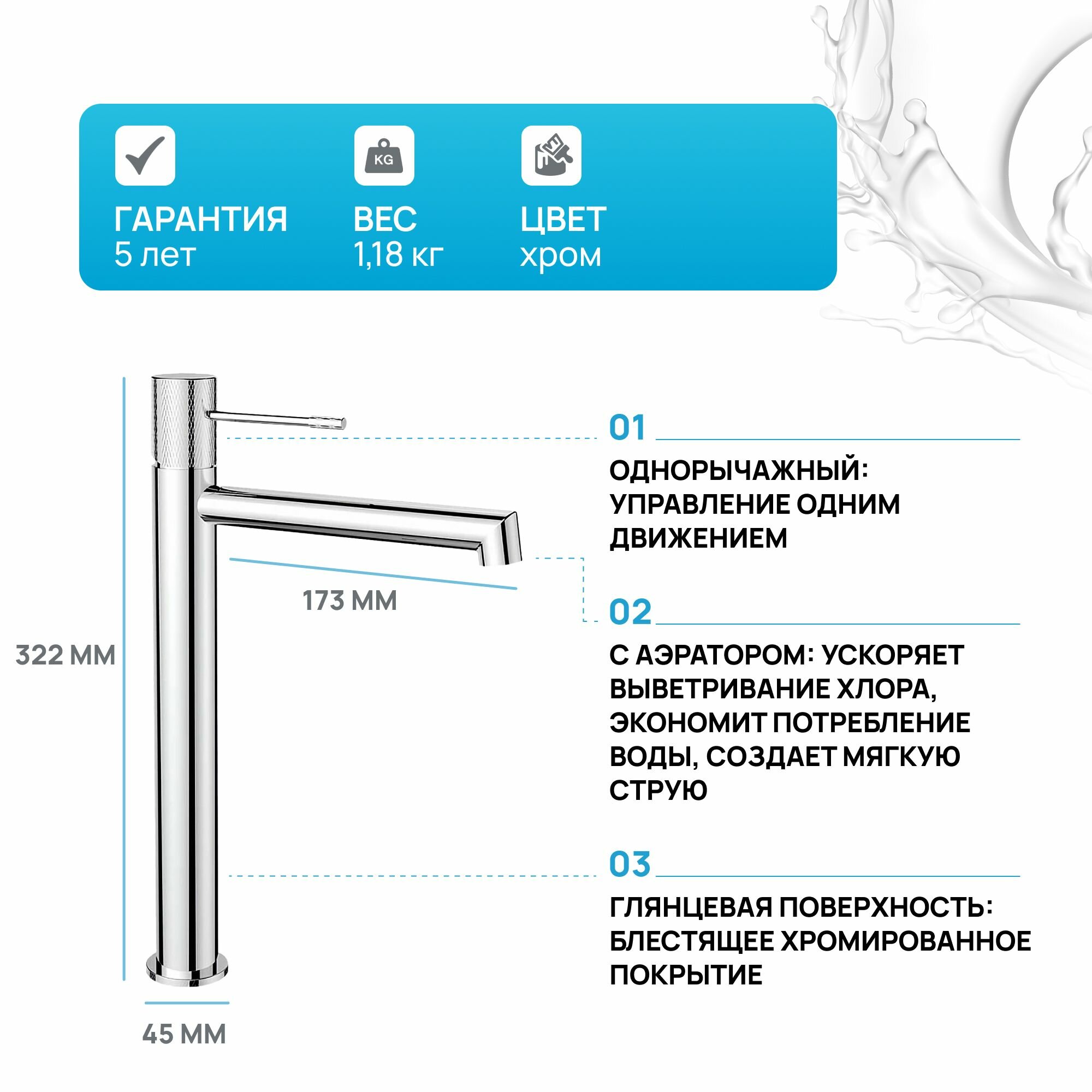 | Длина излива | 173 мм |