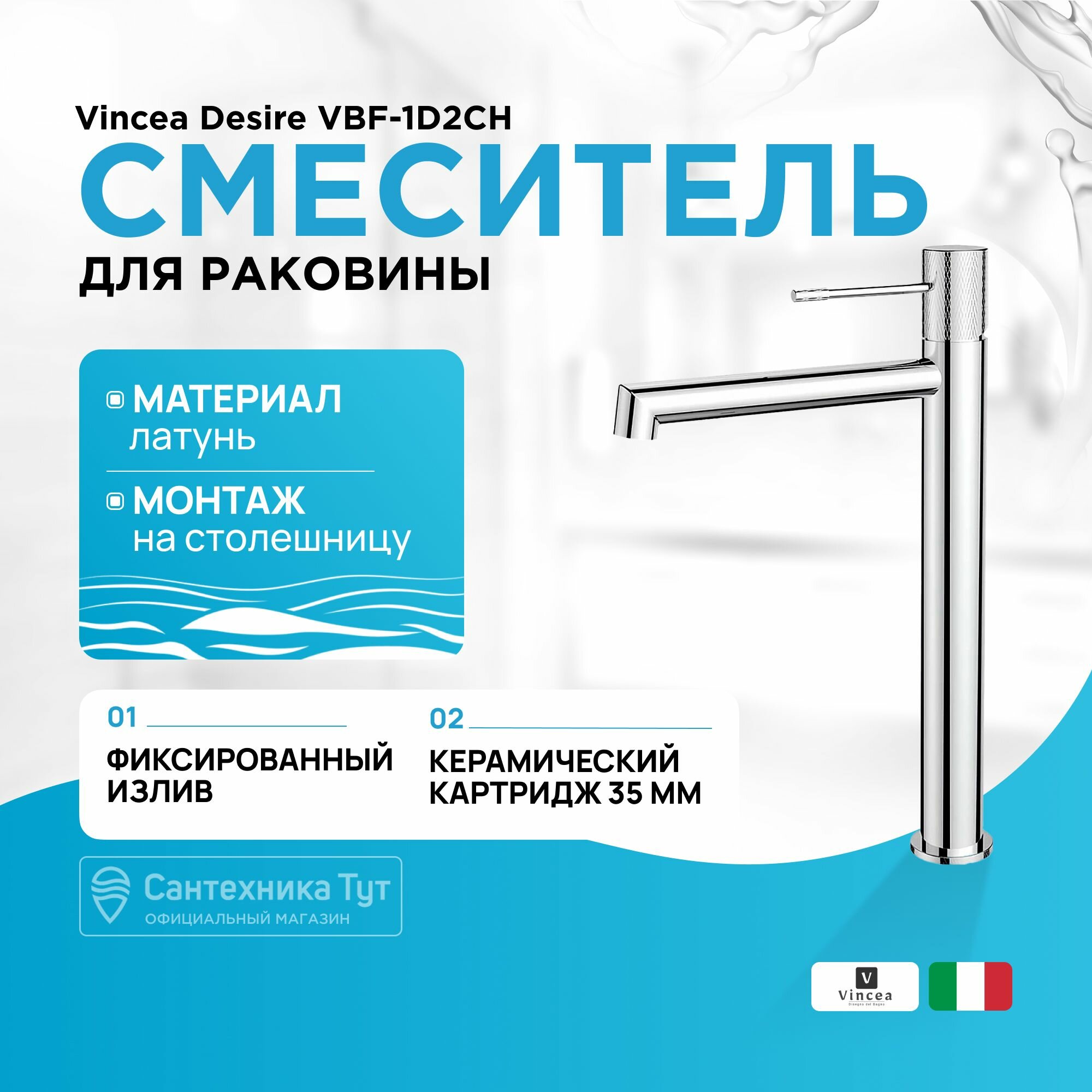 Смеситель для накладной раковины Desire VBF-1D2CH однорычажный, хром