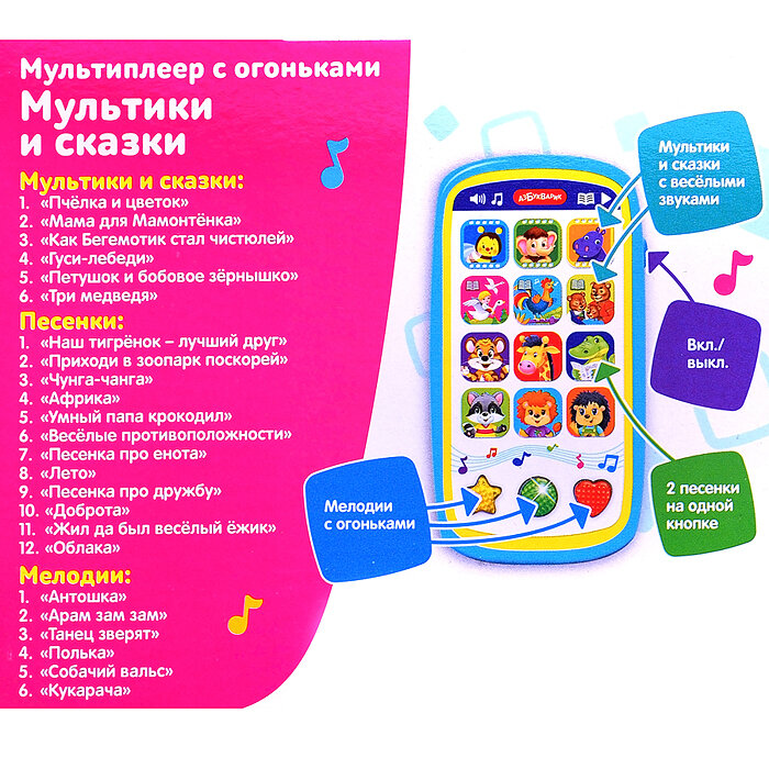 Мультики и сказки, Азбукварик (электронная музыкальная игрушка, серия Мультиплеер с огоньками)