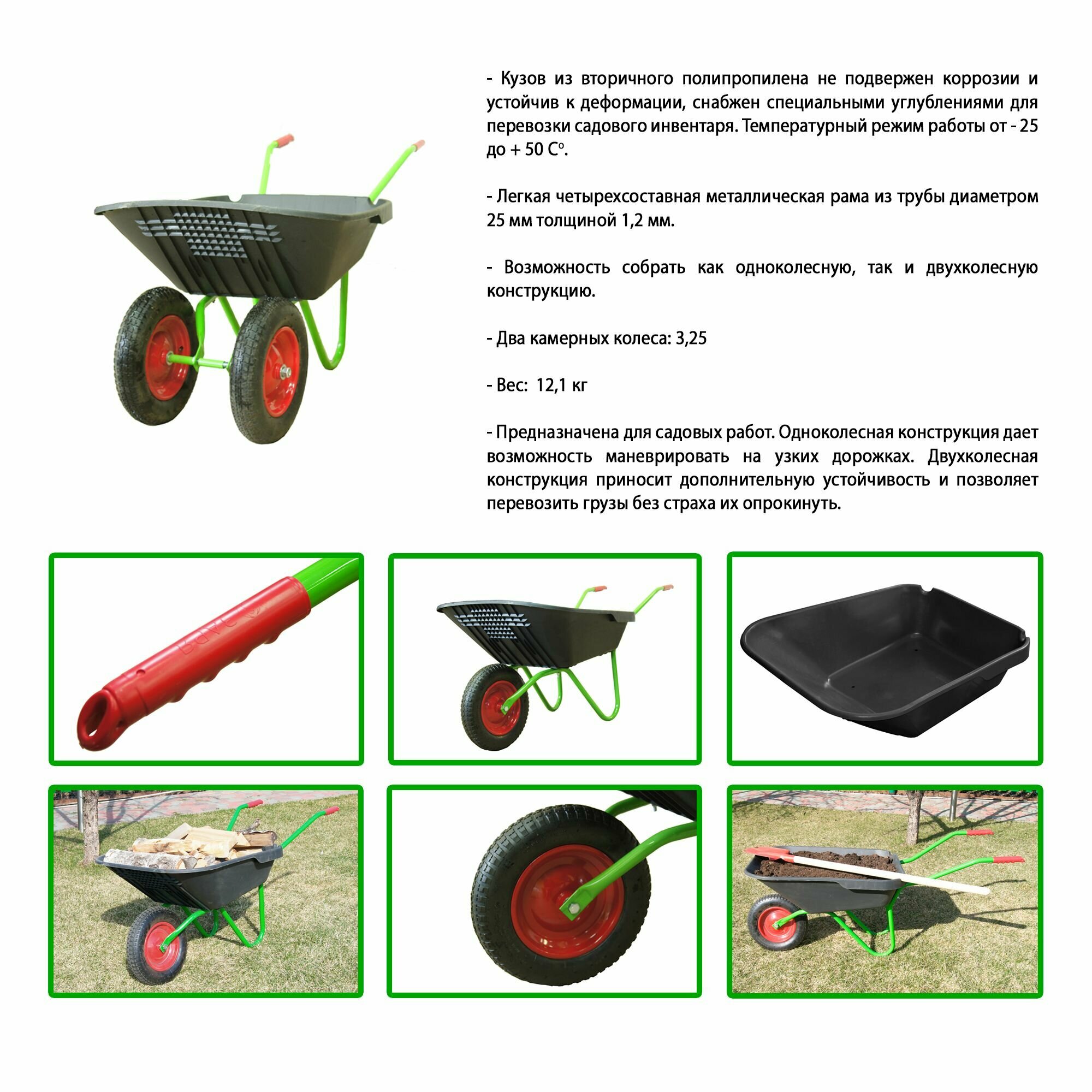Тачка садовая одноколесная 2-в-1 70 л/70 кг цвет черный интересное: