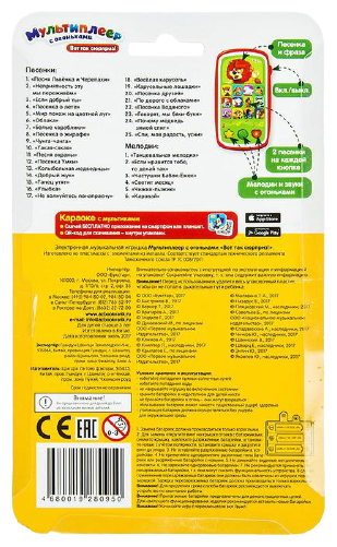 Мультиплеер "Мои песенки и сказки", на блистере 22,5x13x1,5 см