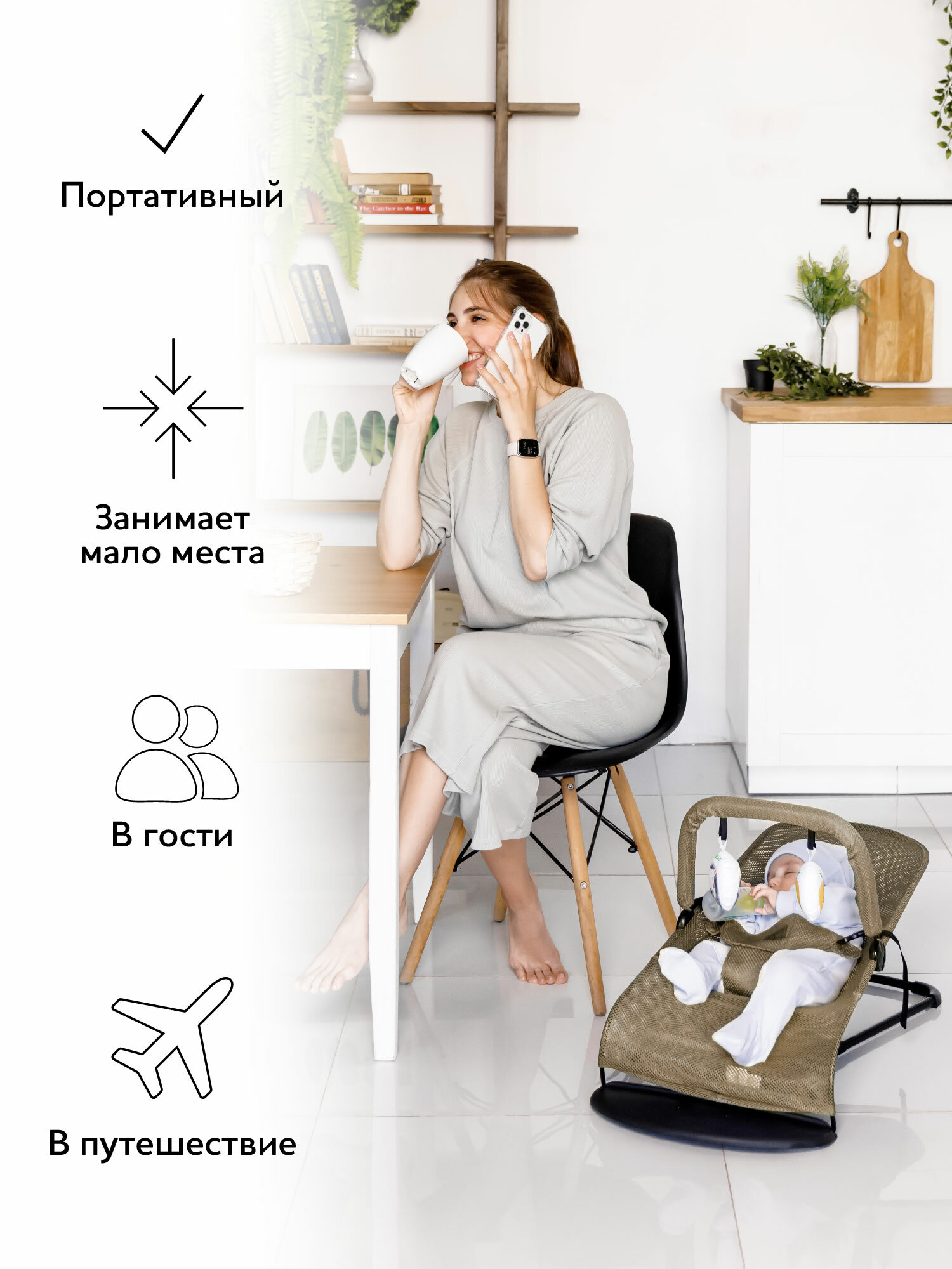 Ребенок в безопасности, стирается чехол и сохнет очень быстро, мобильный! Ребенок качается сам и играет! Находка для мам! |