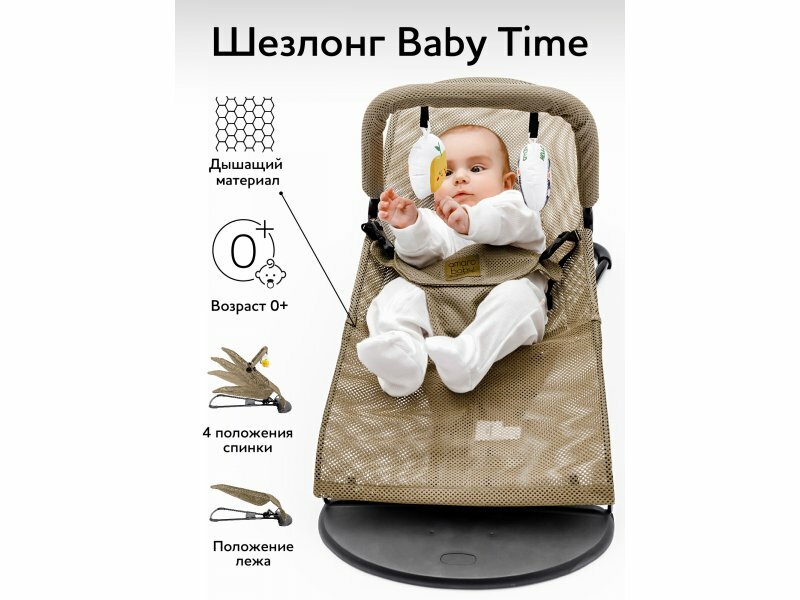 Детский шезлонг Amarobaby Baby time, бежевый (AB21-25BT/03)