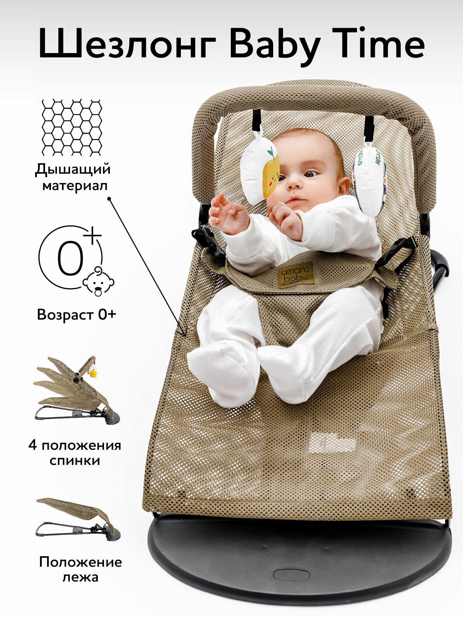 Купить Детский шезлонг Amarobaby, Baby time, бежевый(AB21-25BT/03) .