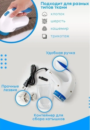 Машинка для удаления катышков / Машинка от катышков, цвет бело-голубой интересное:
