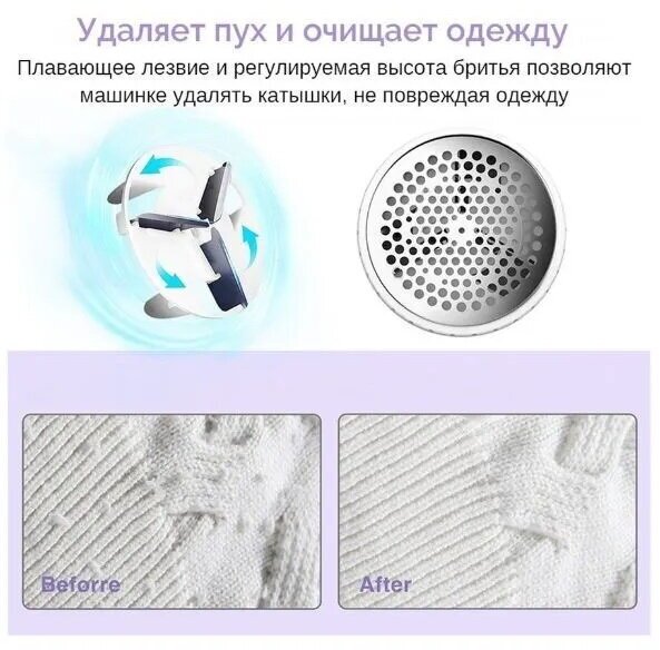 | Комплектация | Машинка для удаления катышек , Шнур для зарядки 220в, Кисточка для чистки, Инструкция по эксплуатации |