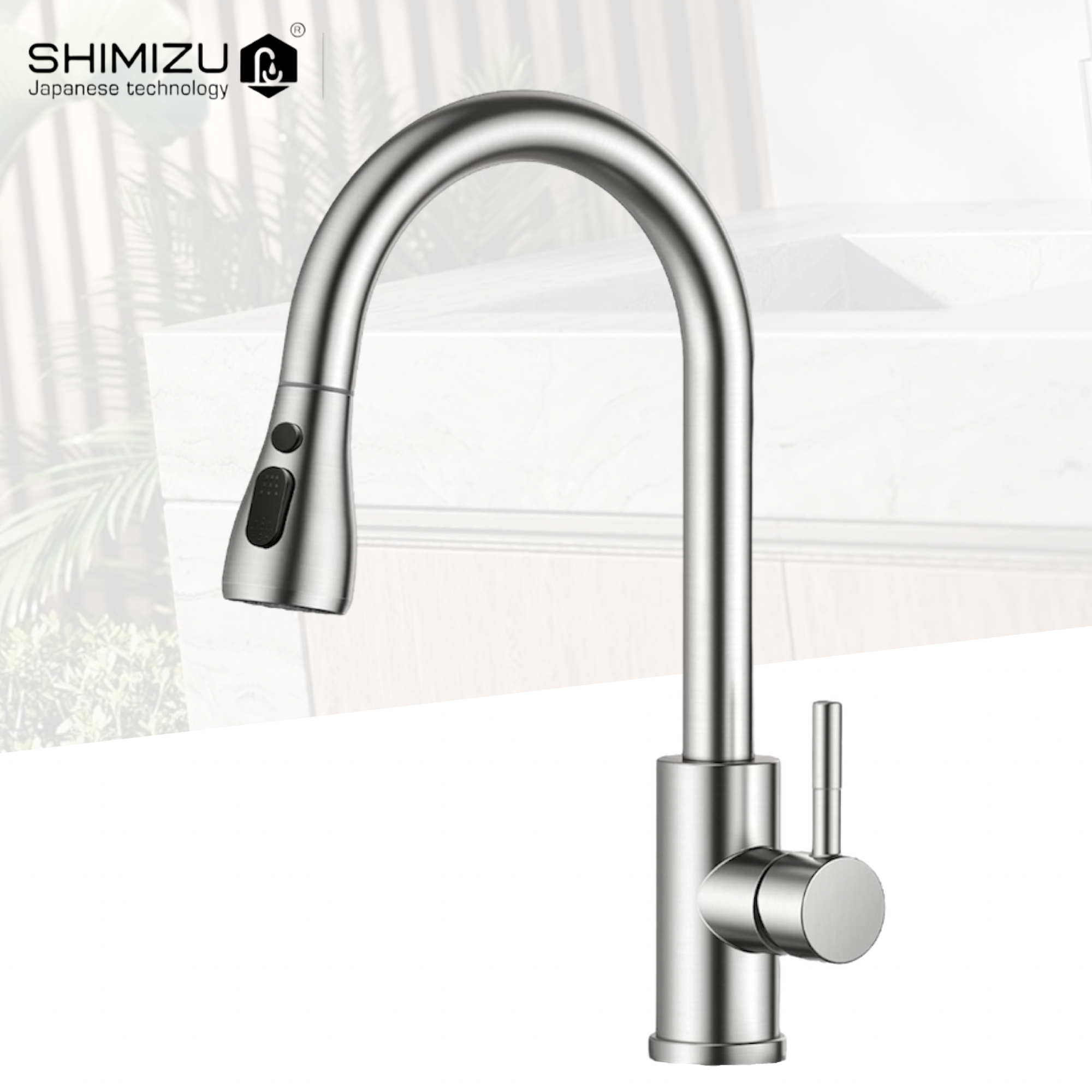 Смеситель для кухни SHIMIZU с выдвижным изливом и режимом душ High-pull smz 1006565