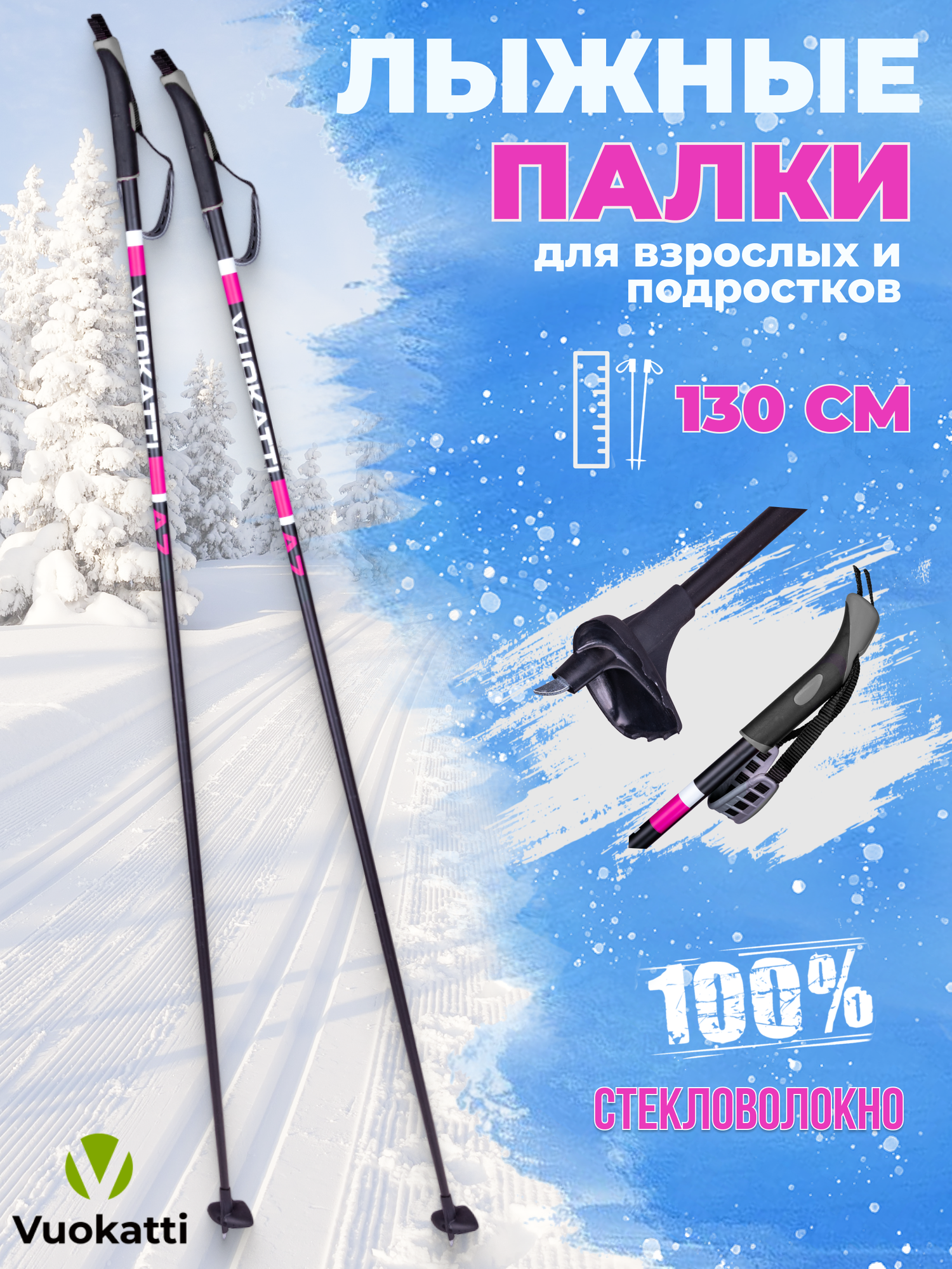 Купить Лыжные палки VUOKATTI Black/Magenta 100% стекловолокно 130 см