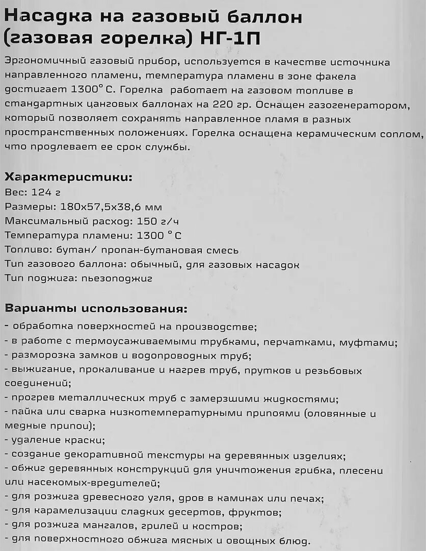 Насадка на газовый баллон Вихрь НГ-1П интересное: