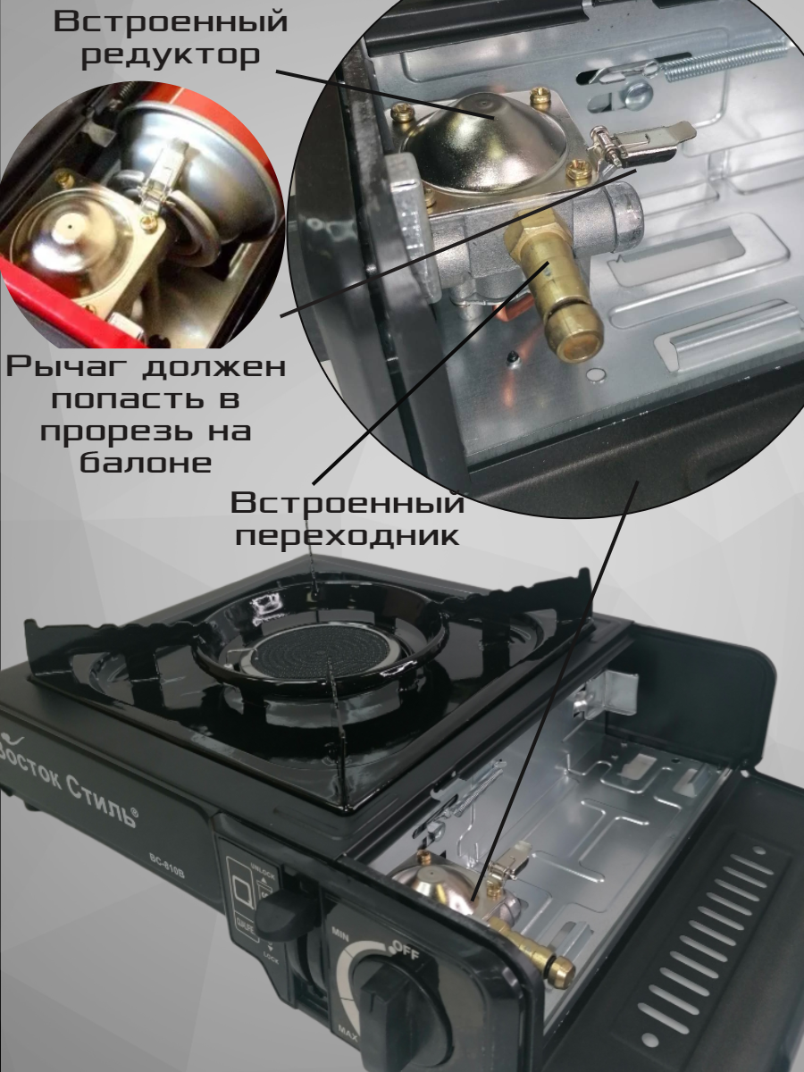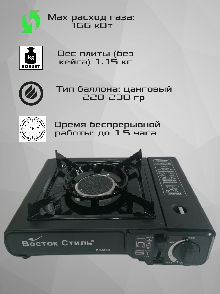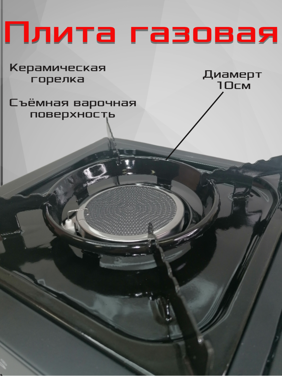 Плитка, плита газовая походная в кейсе с переходником, керамическая, чёрная интересное: