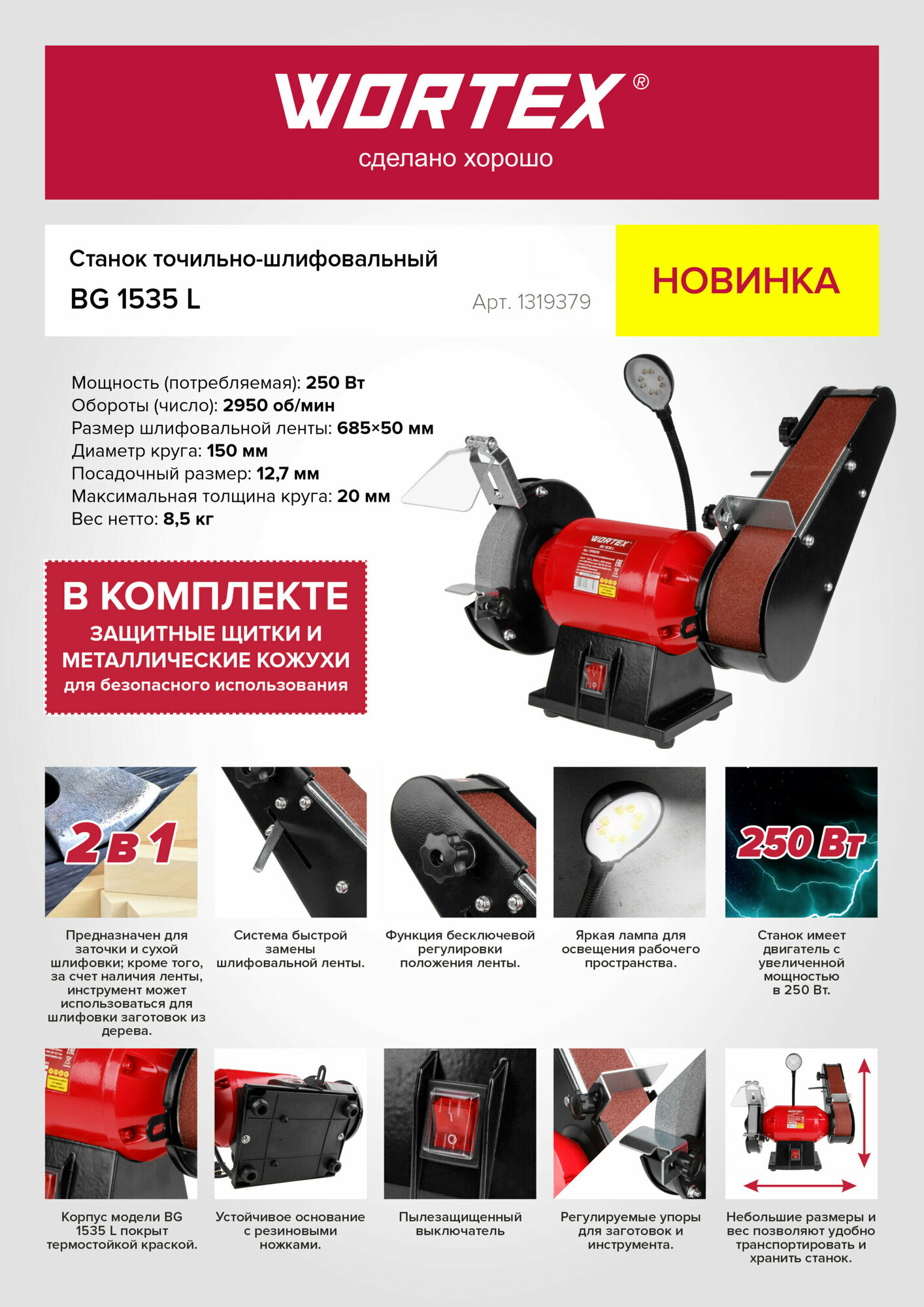 Станок точильно-шлифовальный WORTEX BG 1535 L (1319379) интересное: