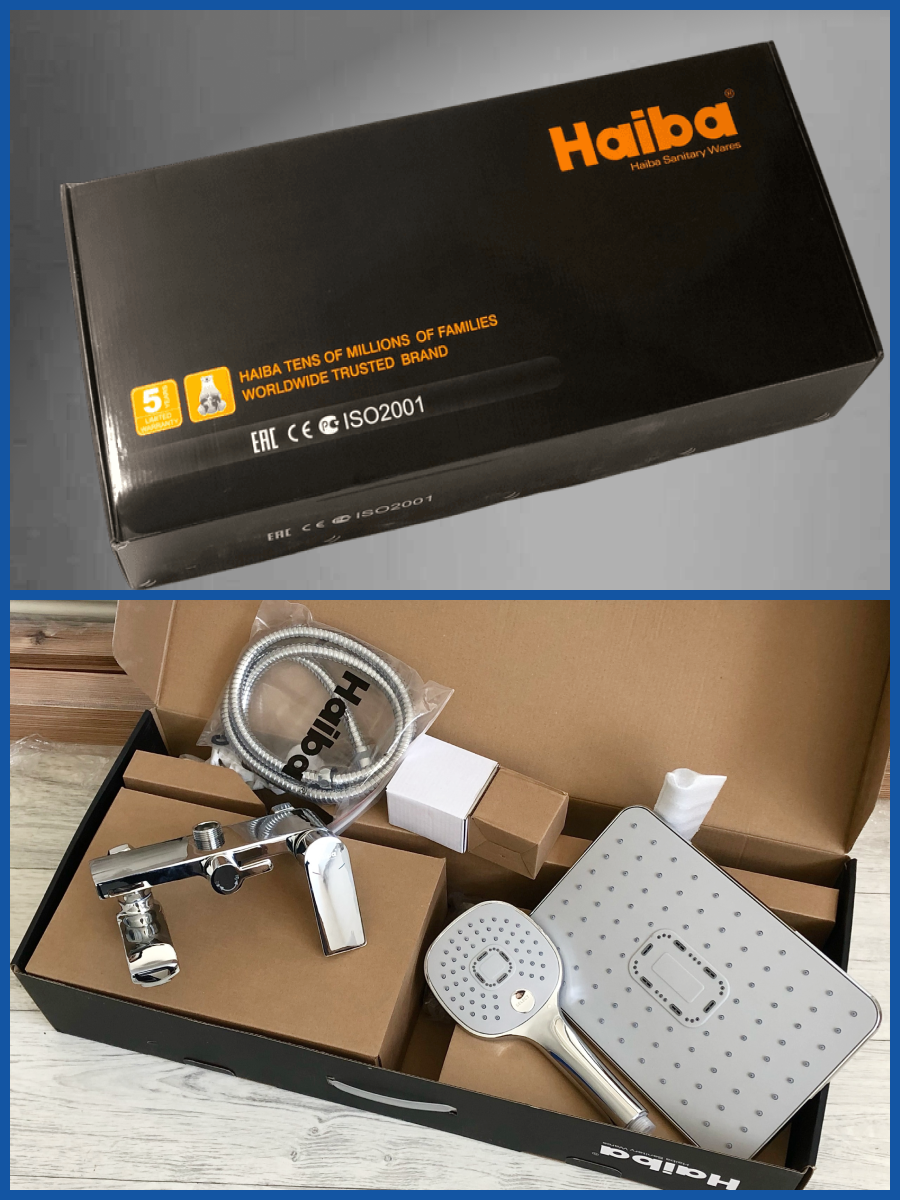 | Комплектация | верхний душ / штанга для верхнего душа / ручной душ / держатель для ручного душа / Смеситель / шланг / крепления / смеситель для раковины |