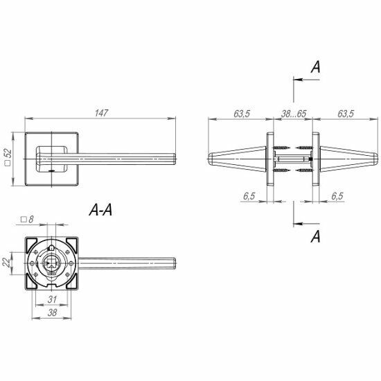 Ручка дверная межкомнатная на квадратной розетке раздельная K.SL52.PRIME (PRIME SL) CP-8 хром