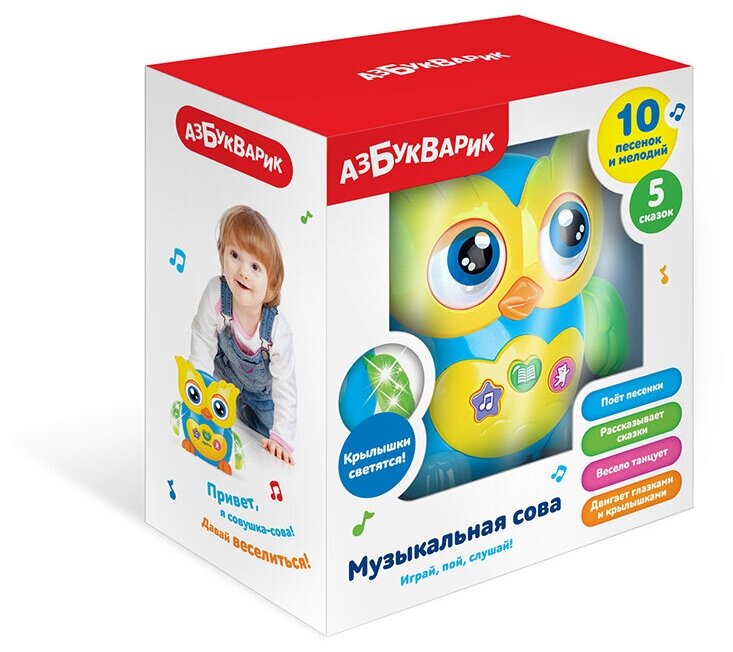 Азбукварик Развивающая игрушка Музыкальная сова Азбукварик