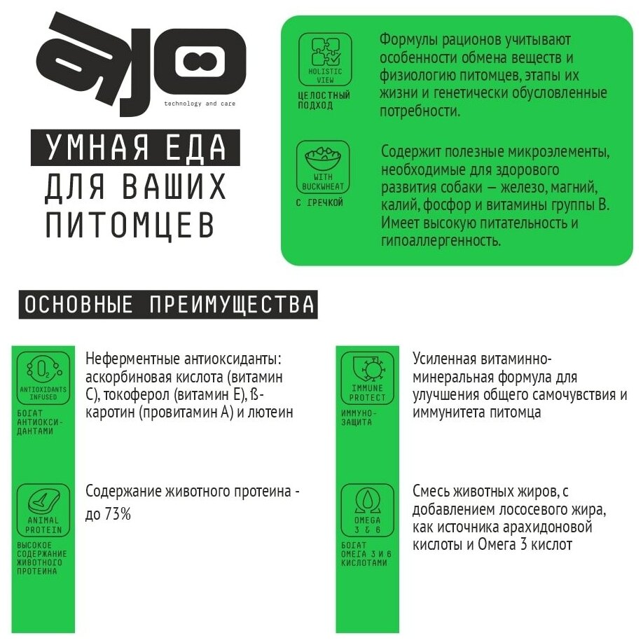 AJO Dog Mini Hypoallergenic Сухой полнорационный корм с гречкой для взрослых собак миниатюрных и малых пород, склонных к аллергиям 2кг