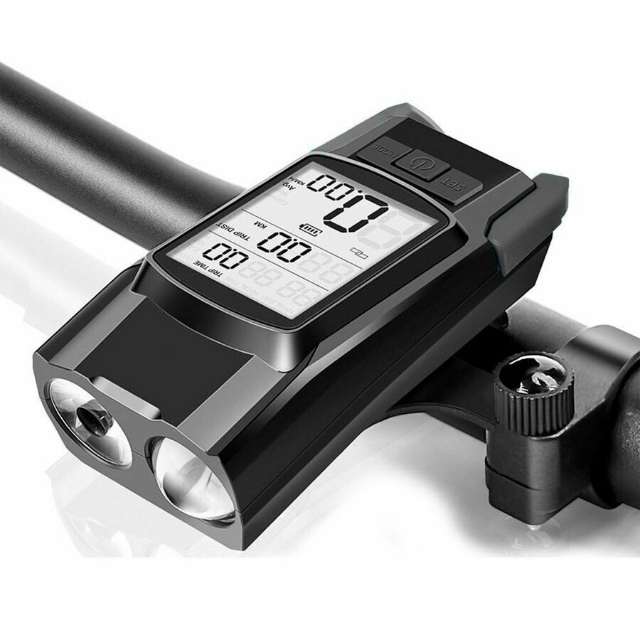 Купить Велокомпьютер 3 в 1 беспроводной USB с фарой и звонком, фонарь и звуковой сигнал, АКБ 4000 мАч, 800 лм, 120 дБ, спидометр, до 3000 часов работы