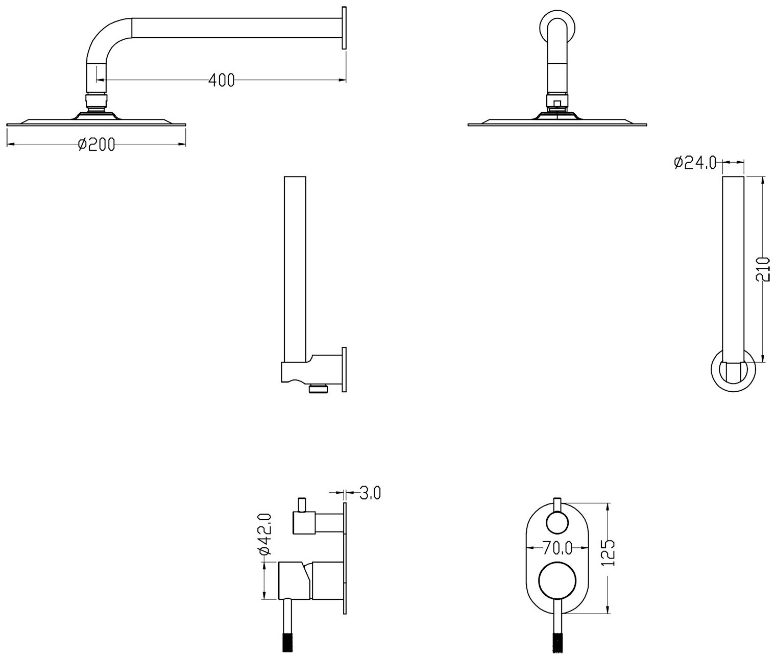 | Комплектация | душевой шланг / душевая лейка / переключатель потоков / кронштейн для верхнего душа |