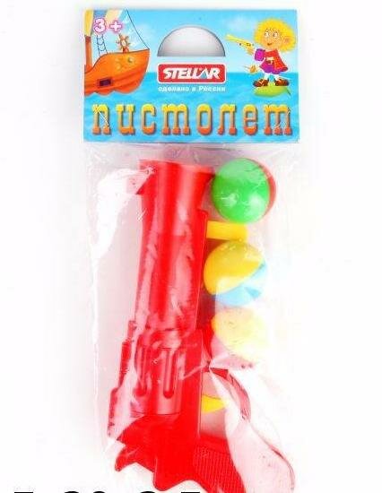 Пистолетик пластмассовый с шариками на блистере Stellar 01304/C