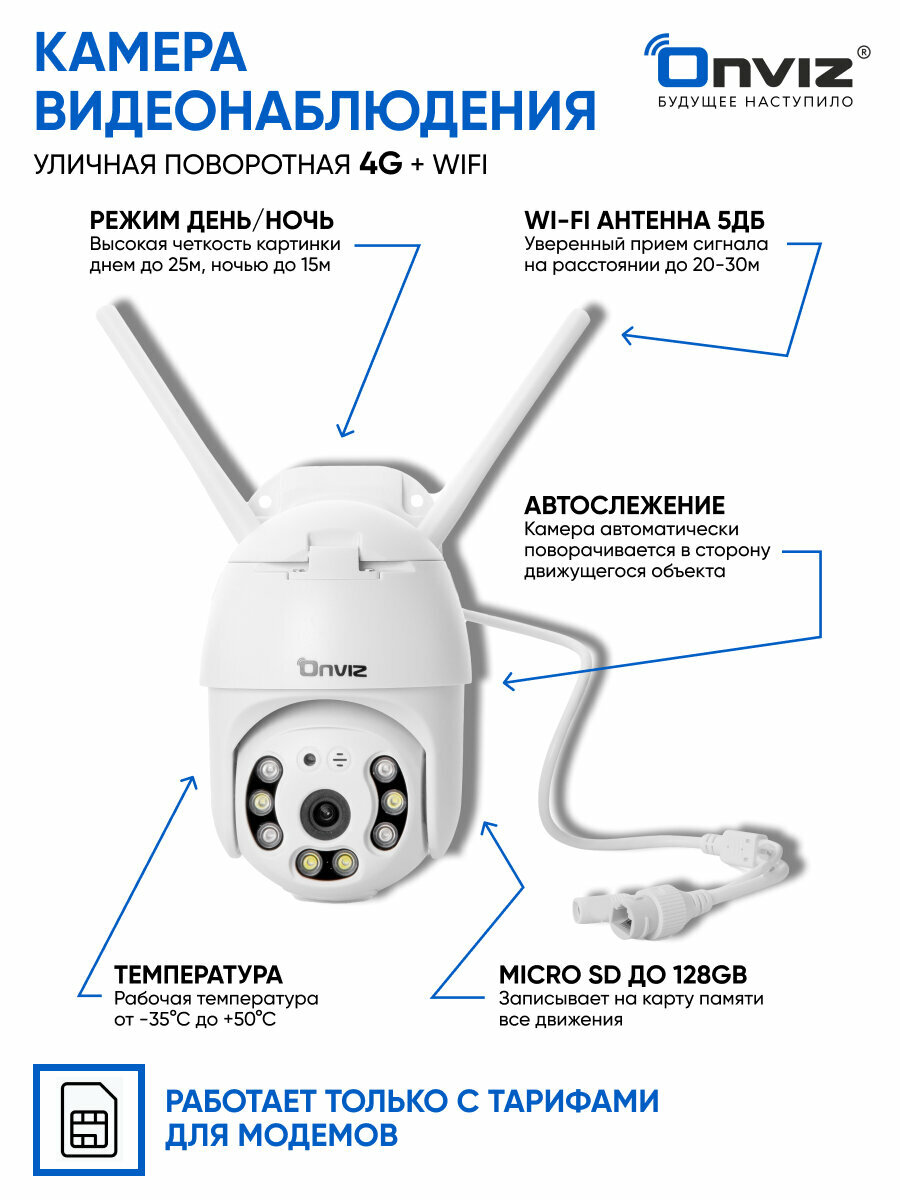 Купольная поворотная 4G WiFi камера видеонаблюдения Onviz U70, беспроводная уличная камера для дачи, для дома интересное: