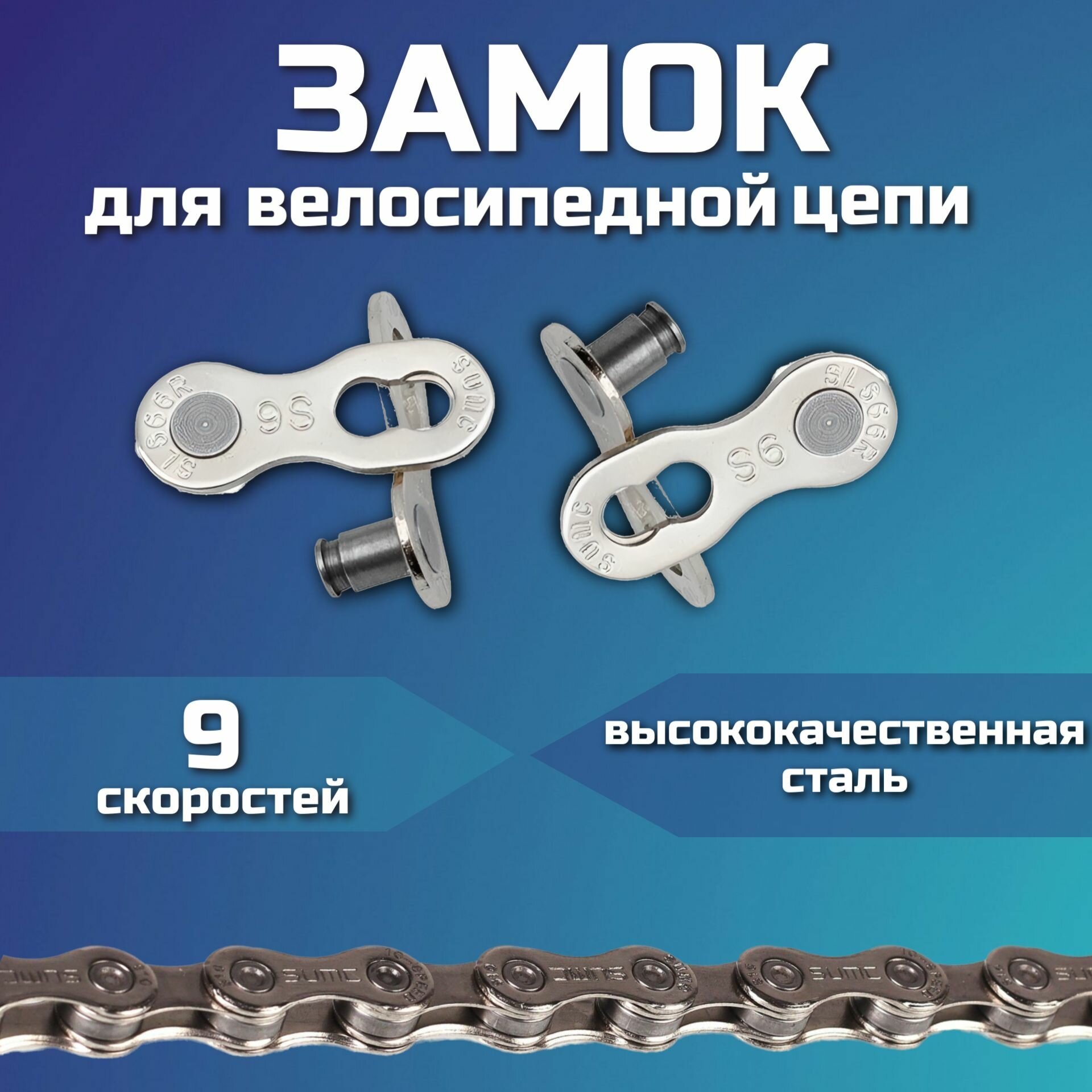 Замок велосипедной цепи 9 скоростей, 2 штуки