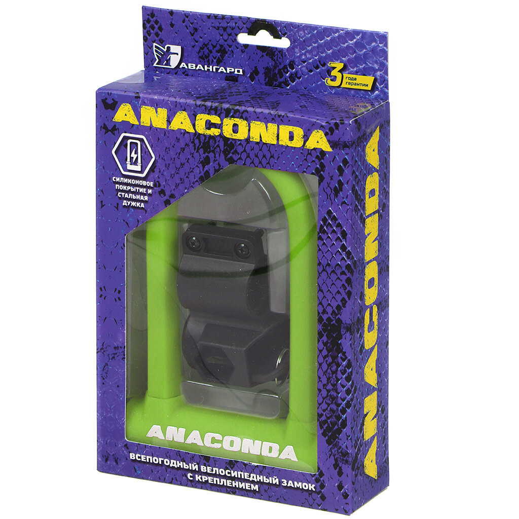 Замок велосипедный авангард ANACONDA Т608 BLACK силикон с креплением на раму