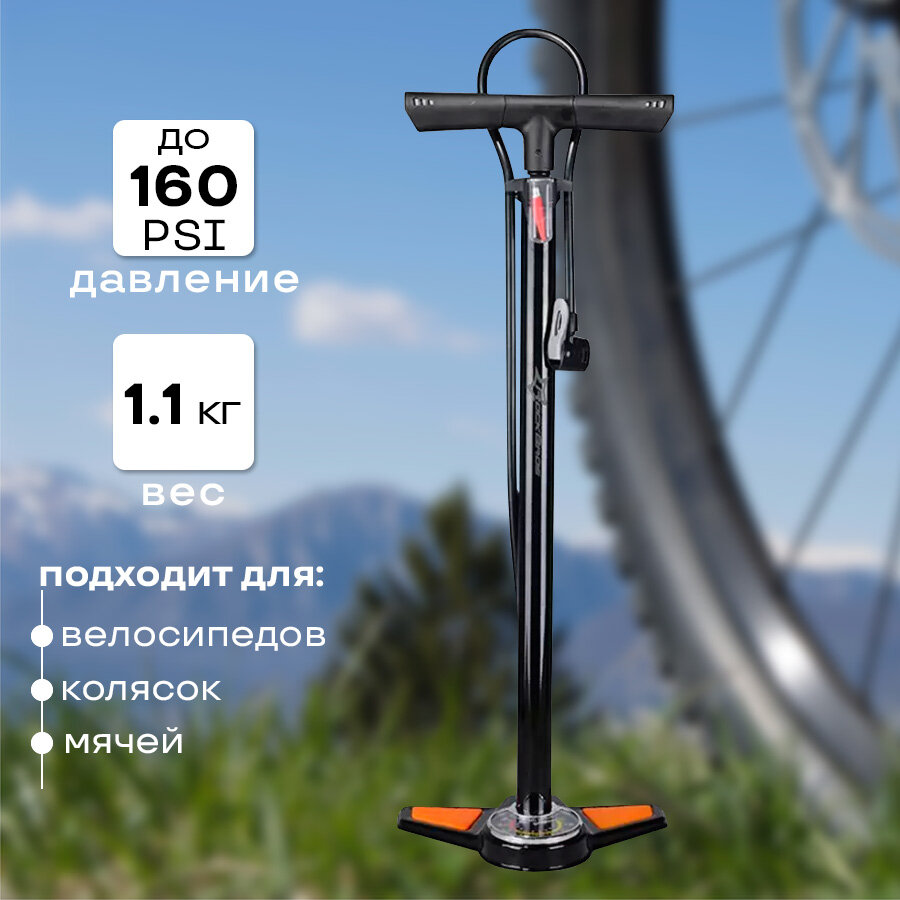 Насос для велосипеда напольный ручной ROCKBROS ниппель Schrader/Presta, с манометром