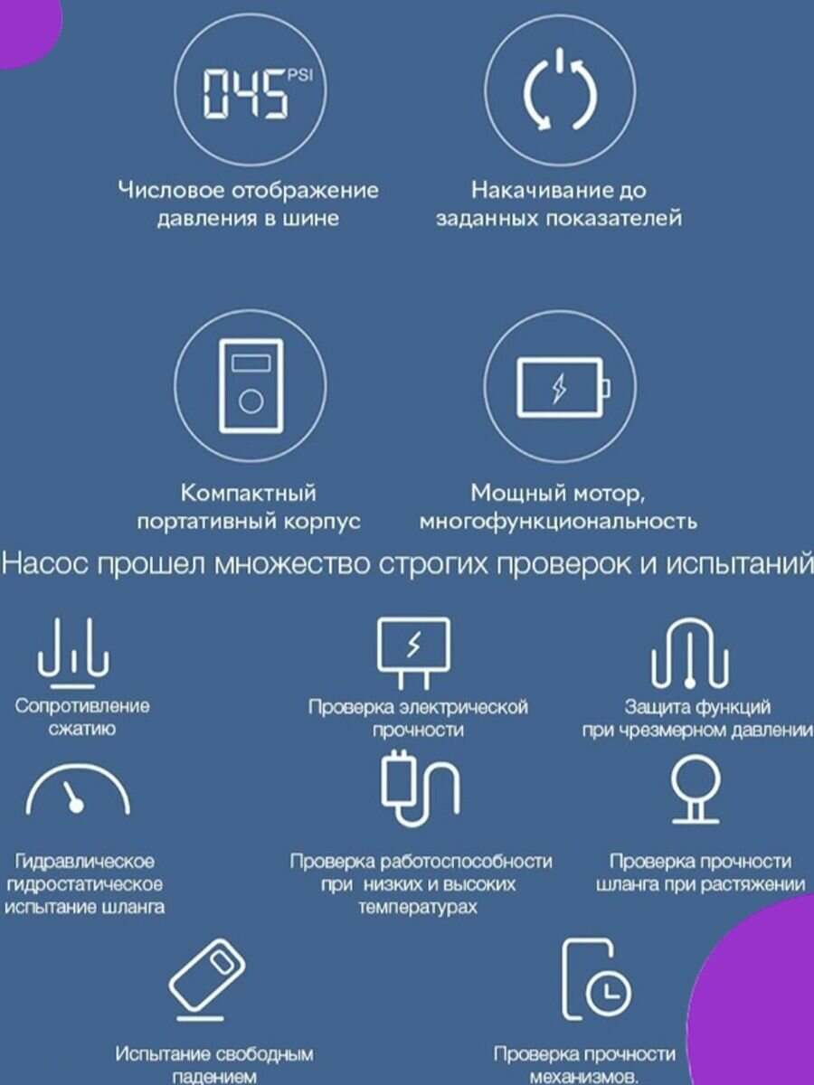 | Плюсы: | - предустановленные пресеты давления (мяч, велосипед, авто)
