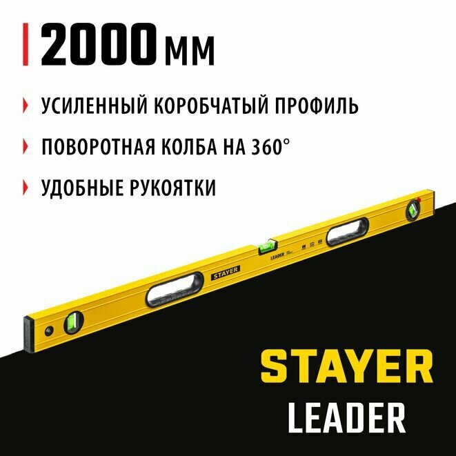 STAYER 2000 мм, уровень строительный фрезерованный LEADER 3466-200_z01