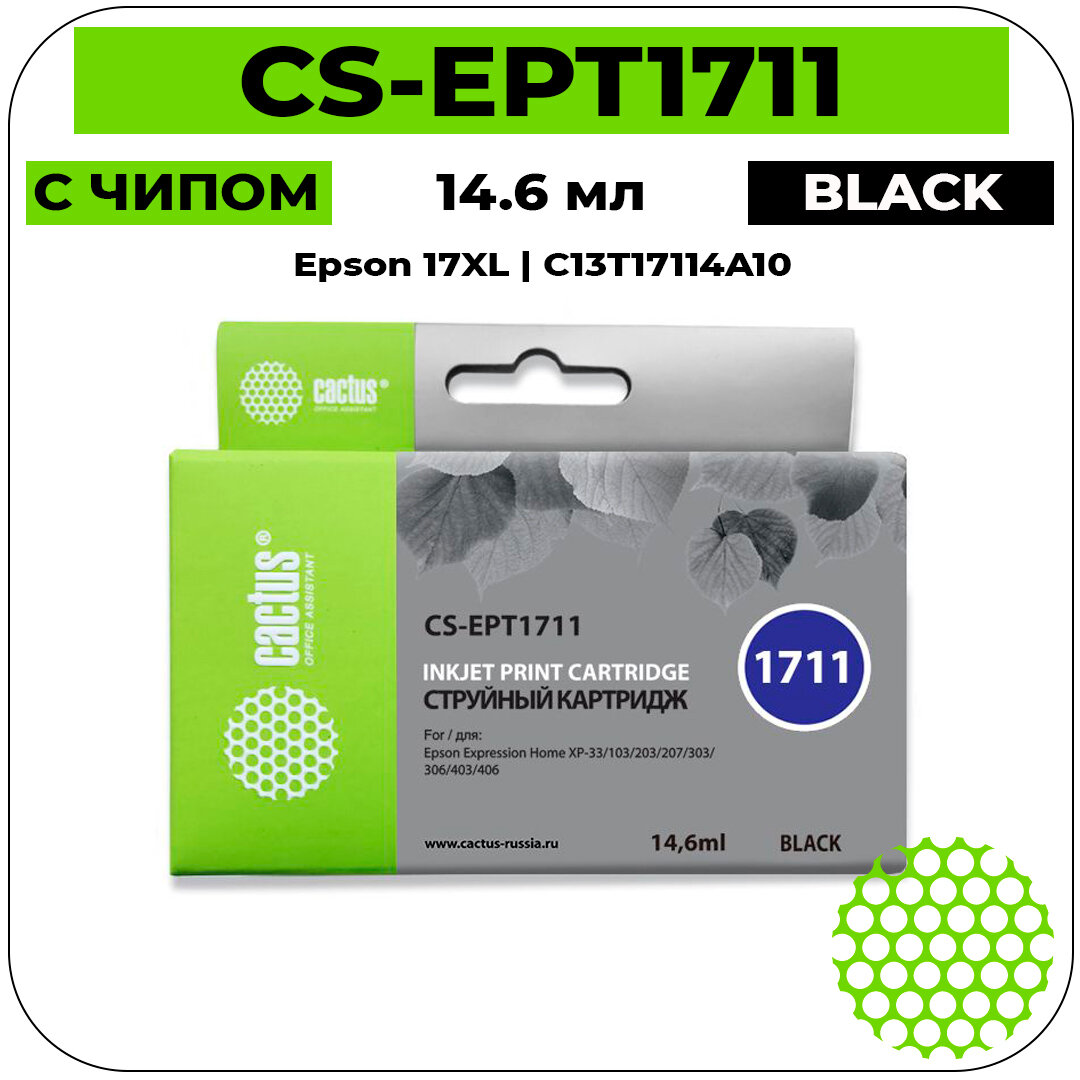 Картридж струйный CACTUS (CS-EPT1711) для EPSON Expression Home XP-33/103/203/207/303, черный