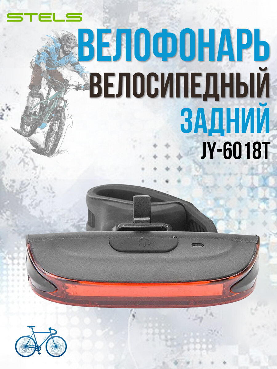 Стоп-сигнал (в сборе) велосипедный (универсальный) (2 RED LED, solar energy, черный) "GJCT"