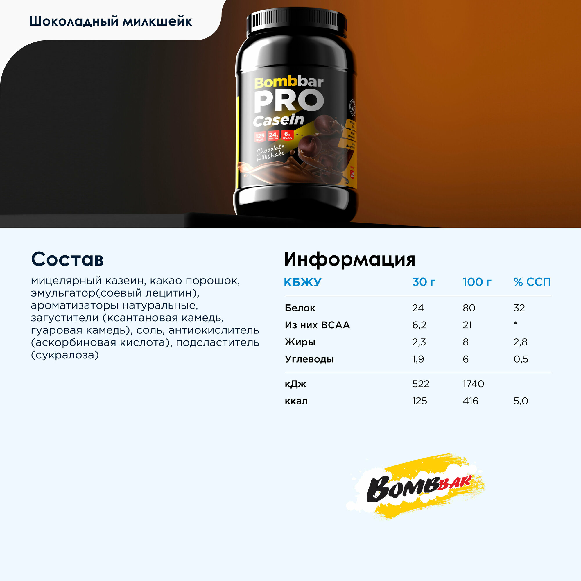 Bombbar Pro Casein (900 гр.) Шоколадный милкшейк