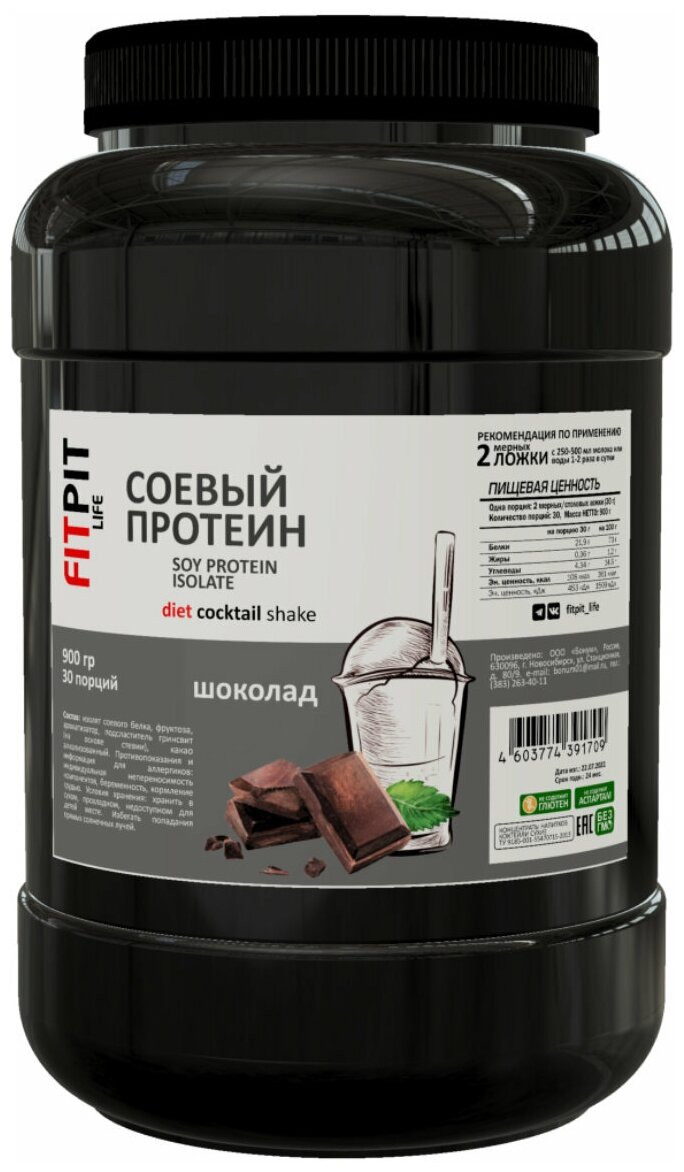 Купить FITPIT Соевый протеин / Изолят соевого белка (без добавления других растительных белков) / 900 гр / Шоколад