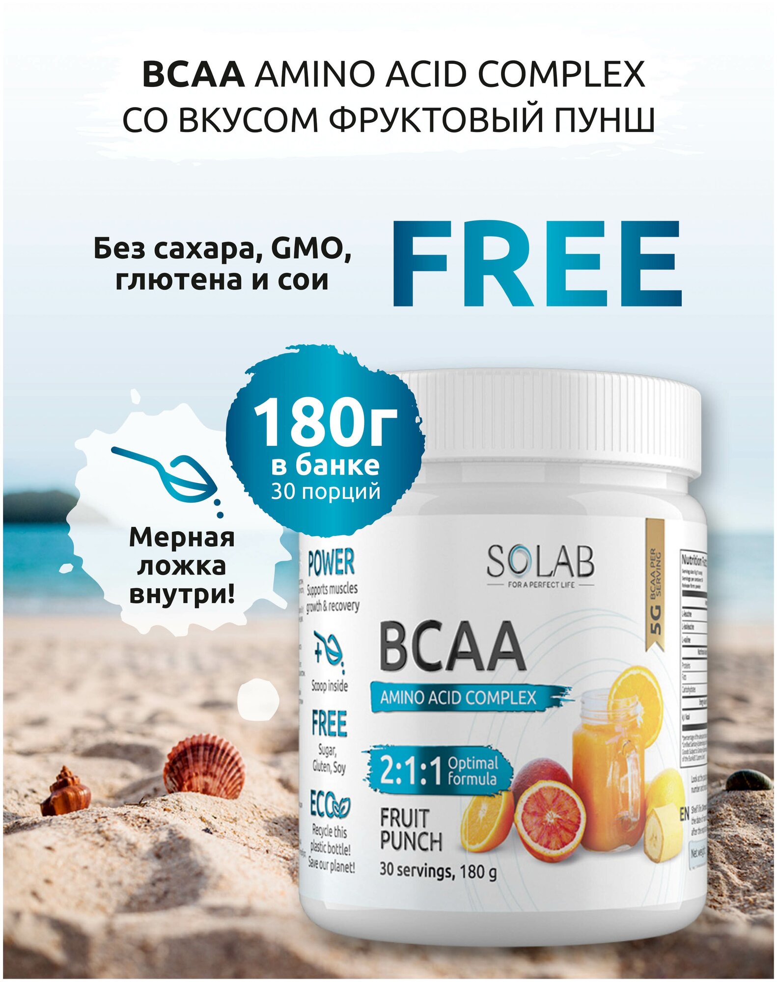 Купить SOLAB Аминокислоты BCAA 2:1:1 порошок 180 гр, 30 порций / БЦАА, спортивное питание, спортпит для мужчин и женщин, вкус фкрутовый микс