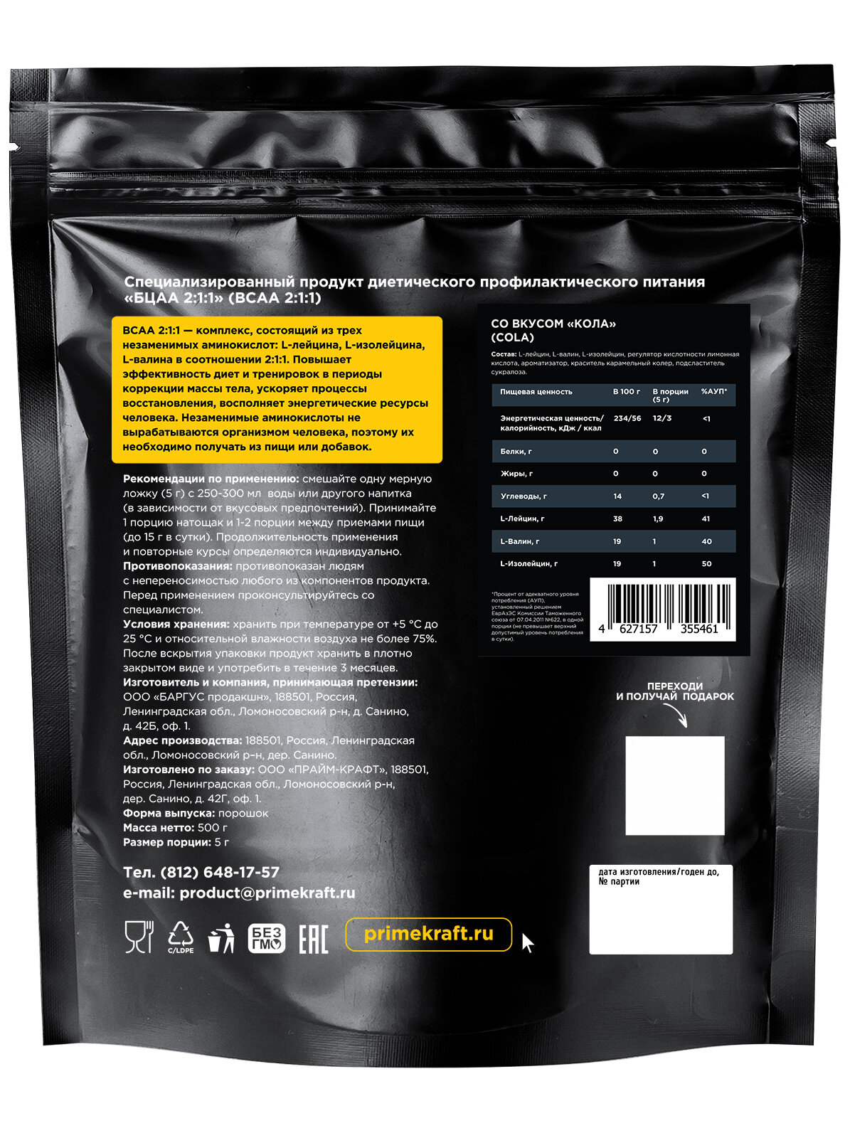 СохранитьАминокислоты PRIMEKRAFT BCAA 2:1:1 (БЦАА) Кола, 500 г / 100 порций интересное: