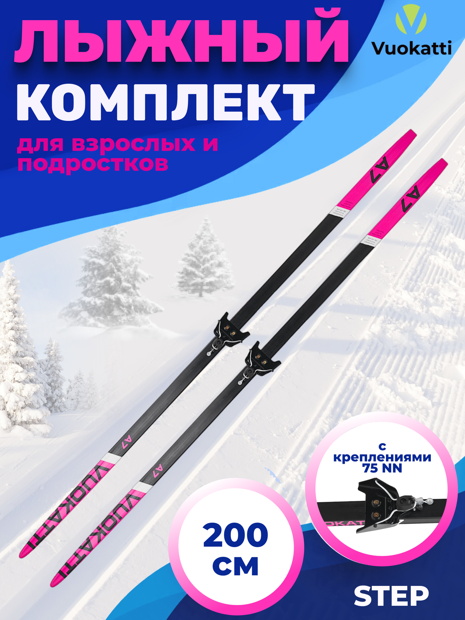 Купить Беговые лыжи комплект VUOKATTI 200 см с креплением 75 мм Step Black/Magenta