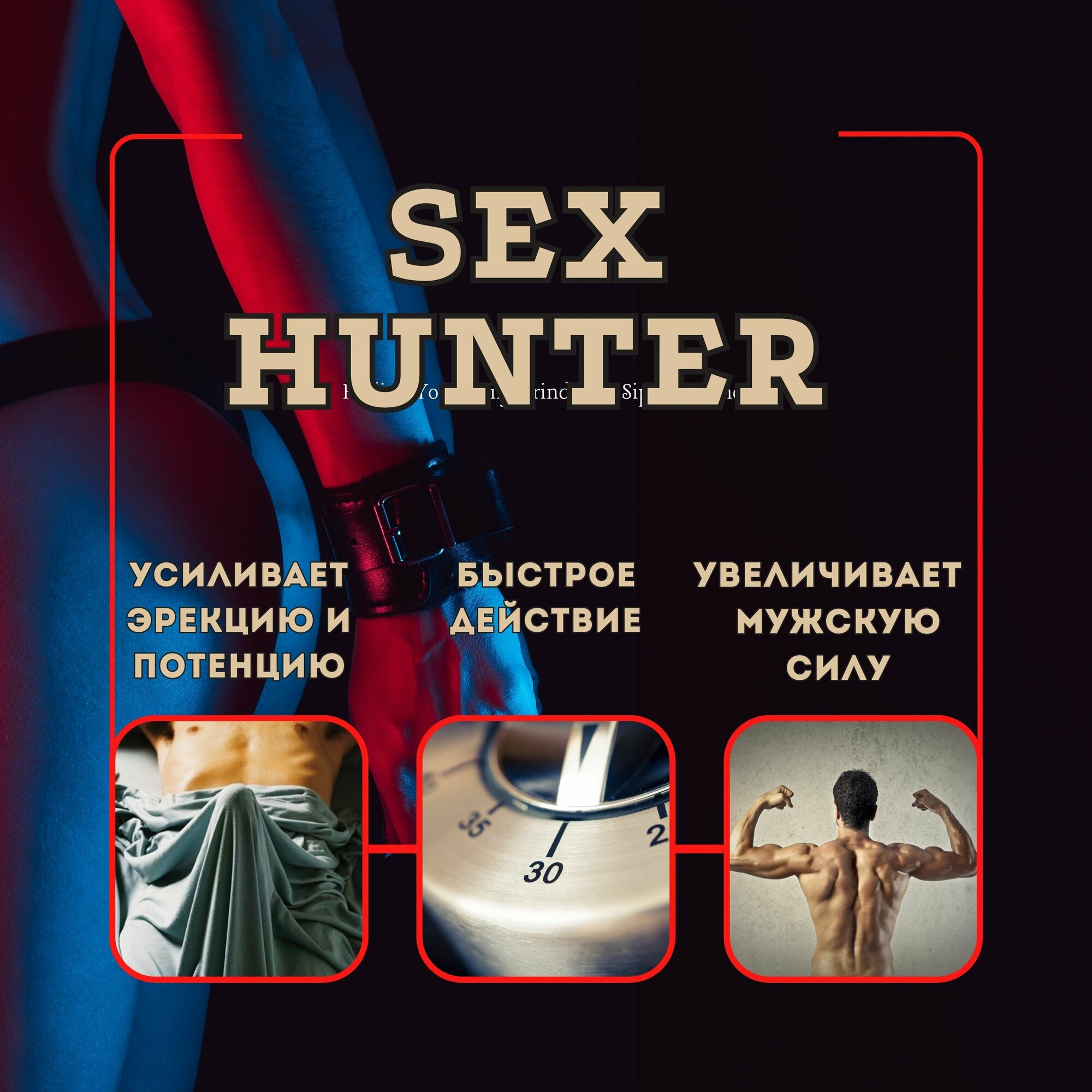 Купить Для повышения тестостерона у мужчин SEXHUNTER, для выносливости и энергии,10 капсул