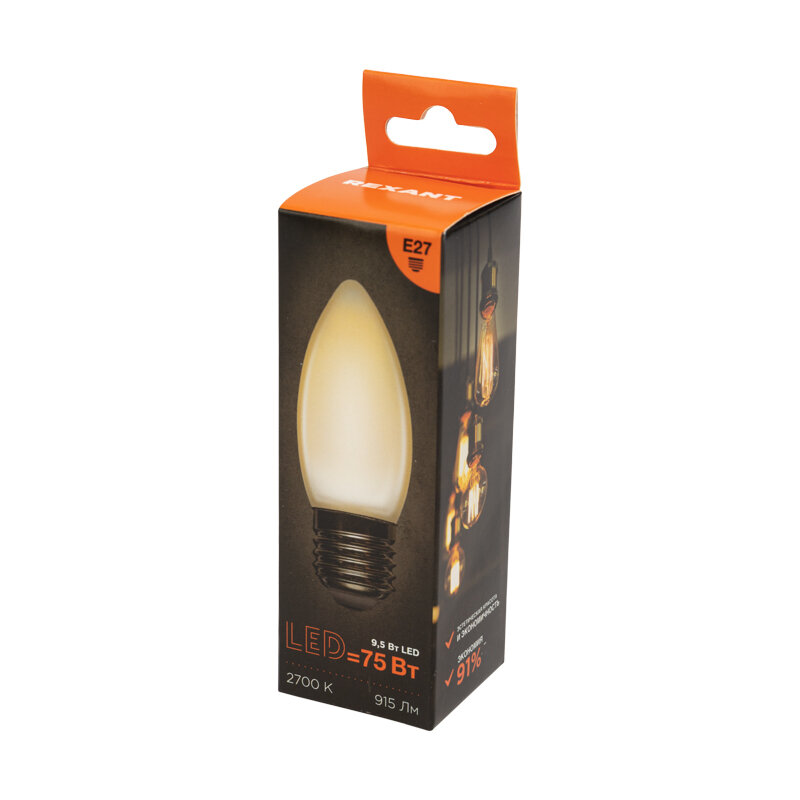 Лампа филаментная REXANT Свеча CN35, 9.5 Вт, 915 Лм, 2700K, E27 в матовой колбе интересное: