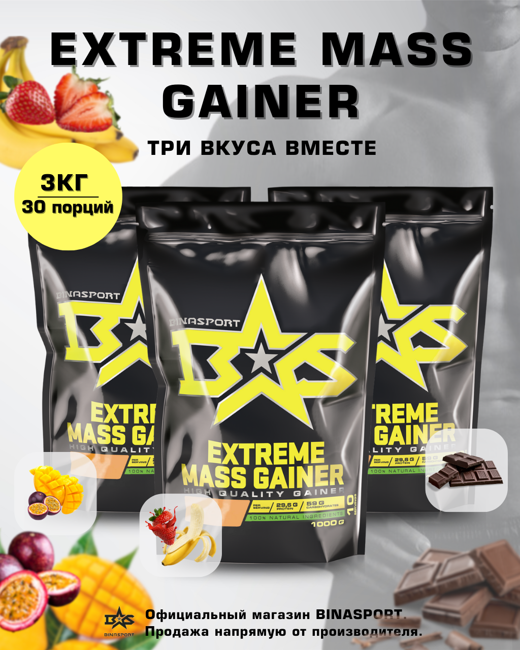 Гейнер Binasport Экстрим Масс "EXTREME MASS GAINER" 3000 г ассорти вкусов интересное: