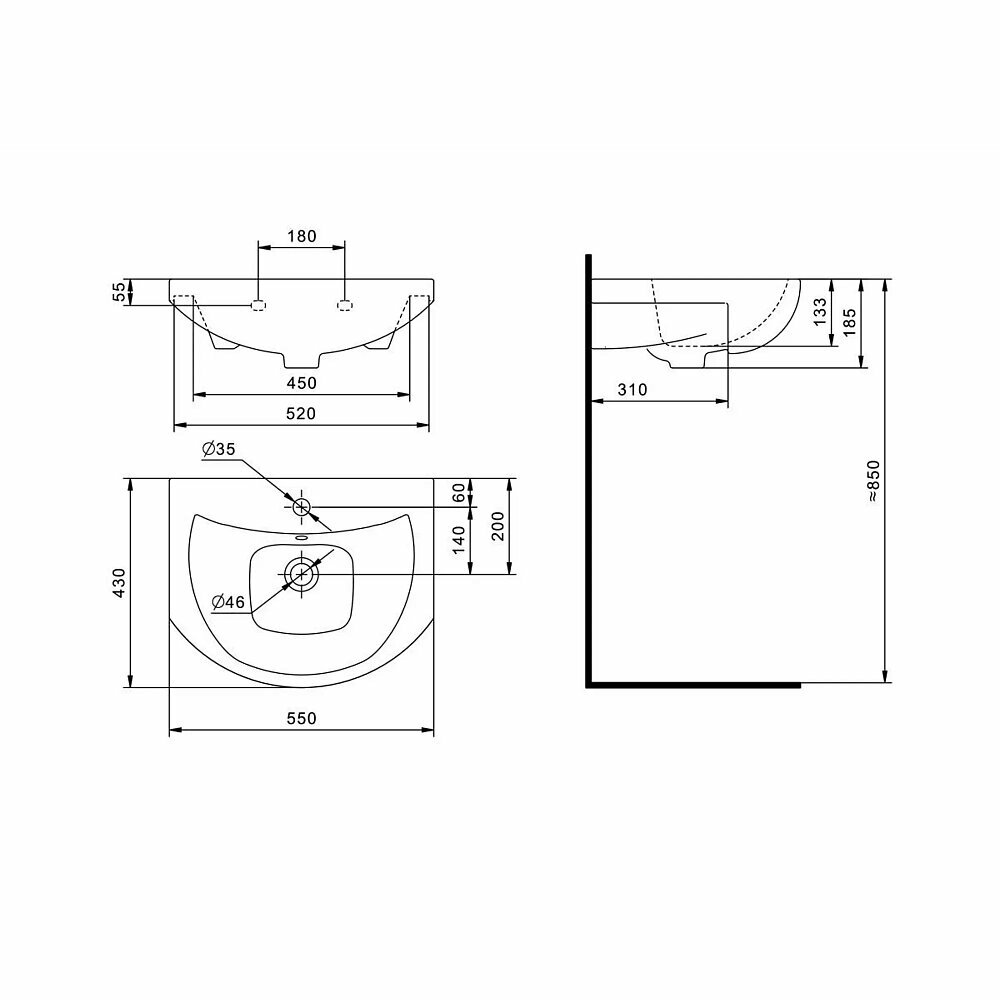 Раковина Santek Балтика 55 отверстие под смеситель 1WH501702