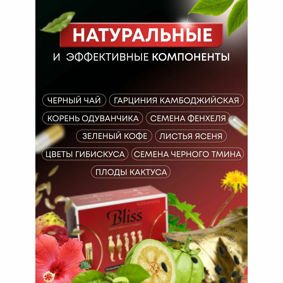 Жиросжигатель Viiitamins "Bliss Gold", для похудения, без ГМО, 40 капсул