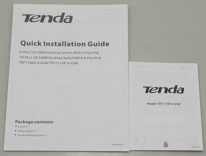 Коммутатор 10PORT 100M 8POE TEF1110P-8-63W TENDA интересное:
