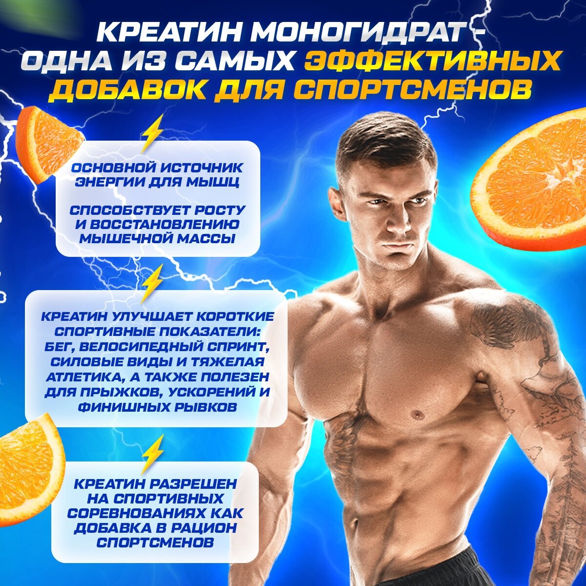 Купить Креатин моногидрат со вкусом апельсина порошок 200 гр 40 порций, спортивное питание для набора мышечной массы