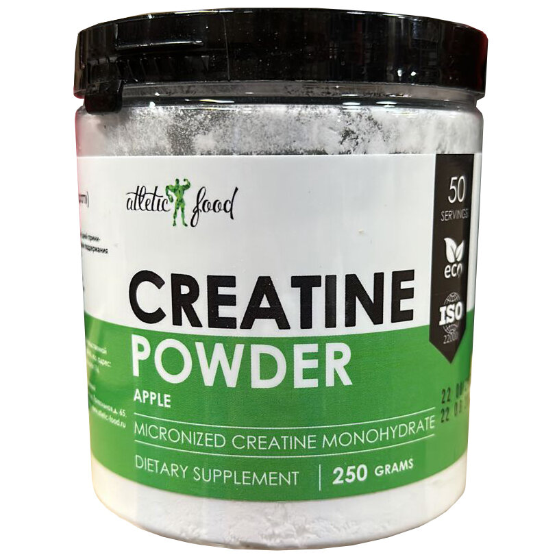 Микронизированный креатин моногидрат Atletic Food 100% Micronized Creatine Monohydrate, 250 г, яблоко интересное: