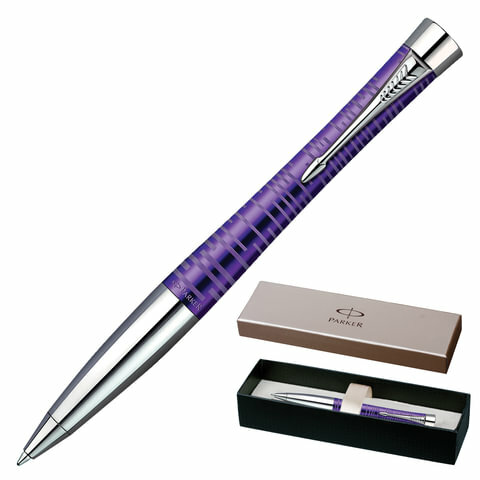 Ручка подарочная шариковая PARKER "Urban Premium Vacumatic Amethyst Pearl", фиолетовый корпус, хром, синяя, 1906862