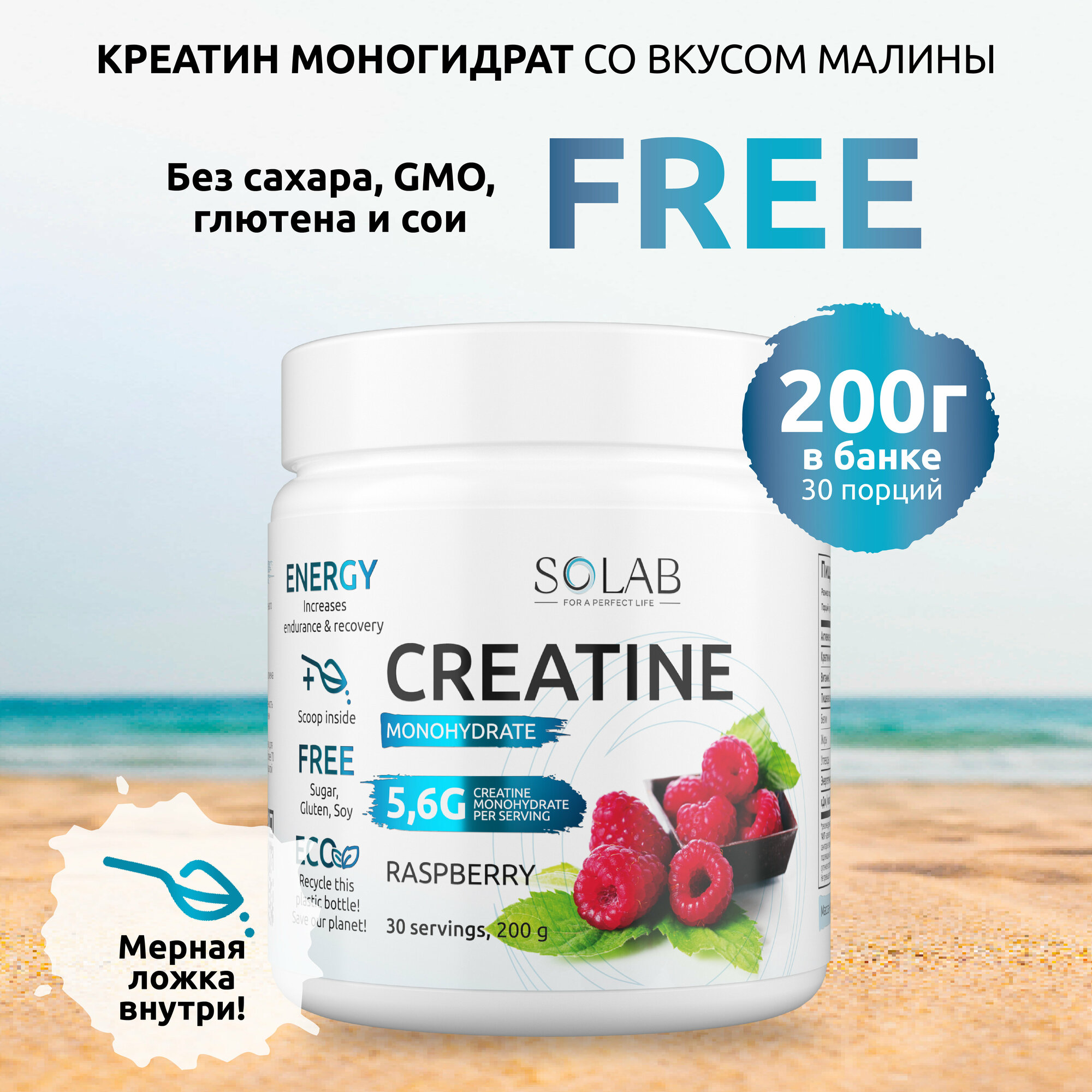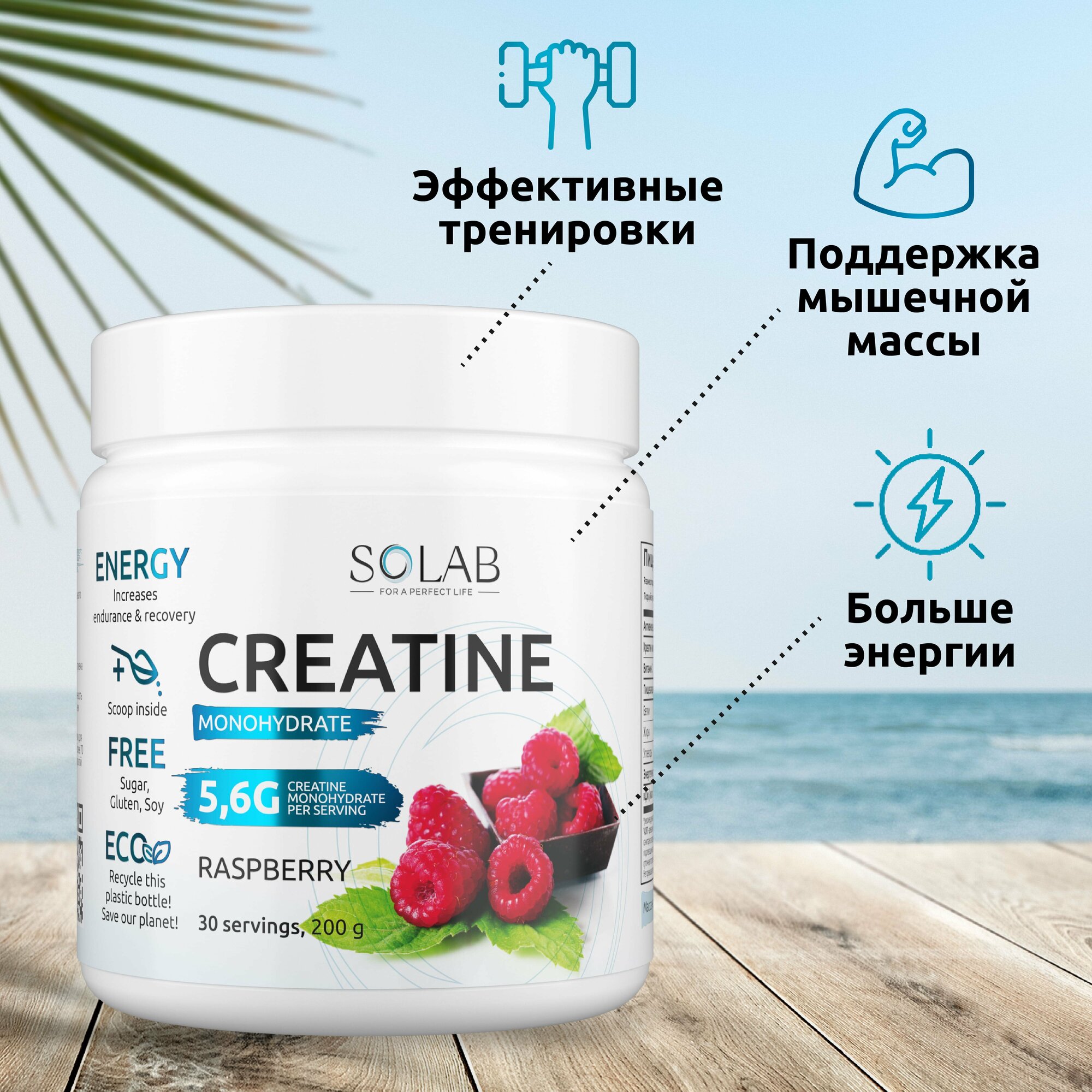 Купить SOLAB Креатин моногидрат порошок 30 порций вкус малина 200 гр спортивное функциональное питание