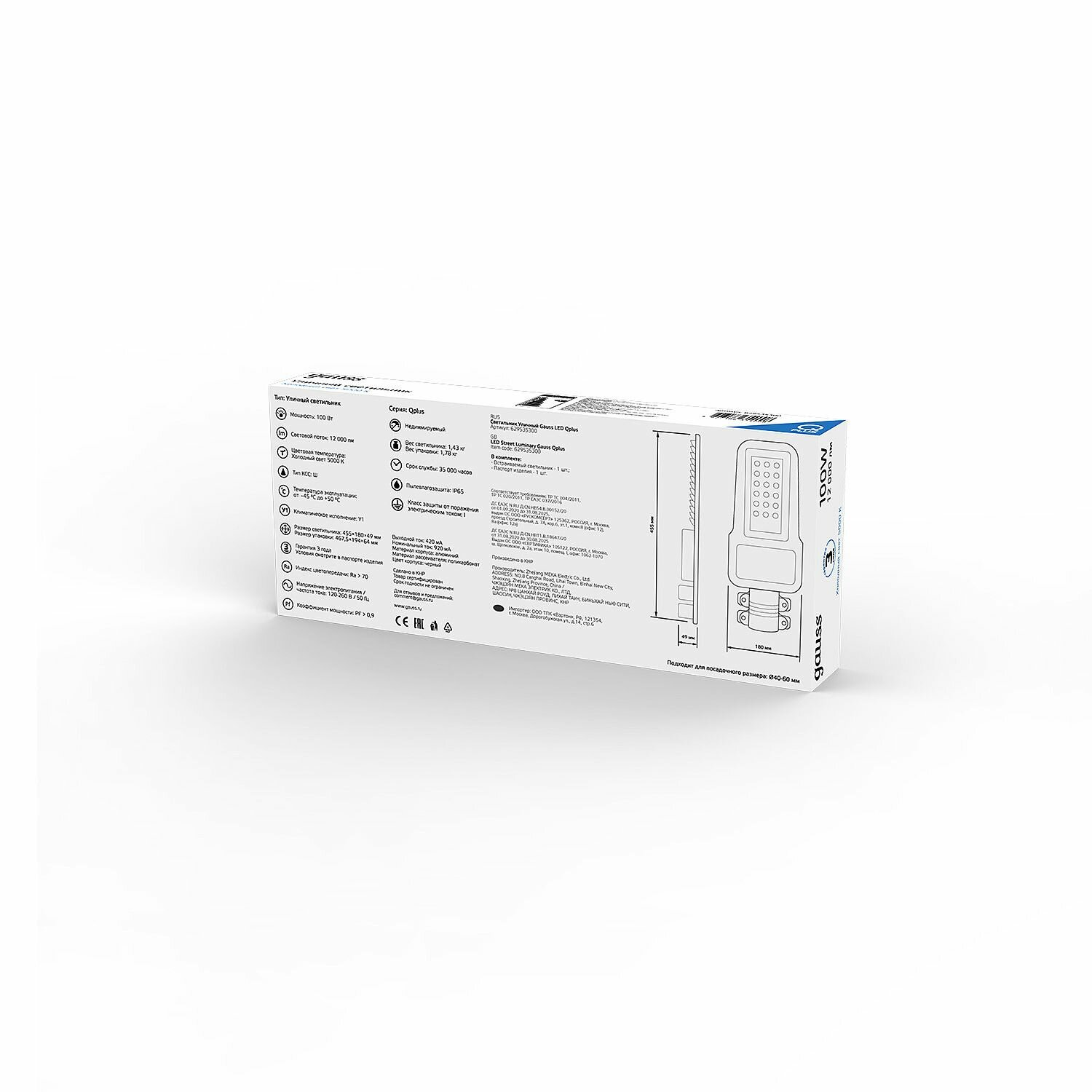 Светильник светодиодный уличный консольный LED ДКУ 100 Вт 12000 Лм 5000К IP65 120-260 В КСС Ш 455х180х49 мм Qplus Gauss Gauss 629535300